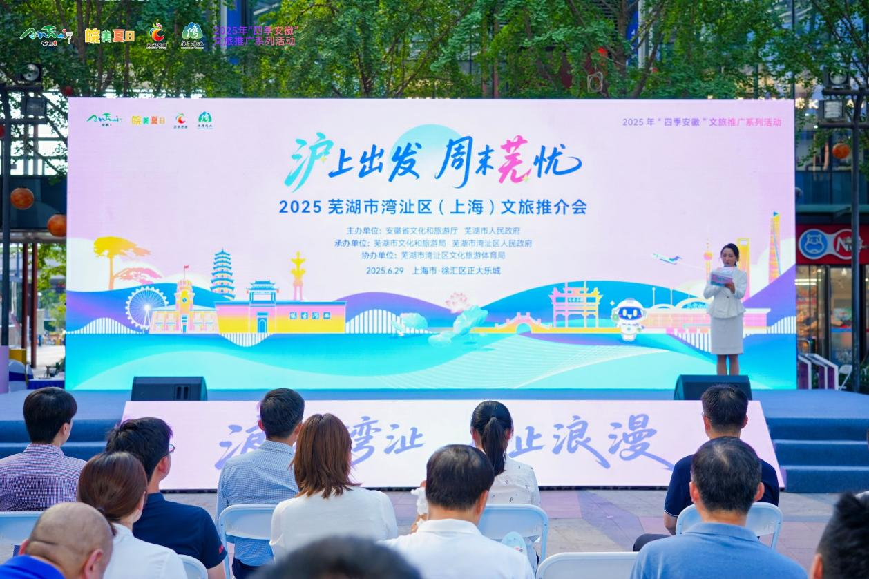 皖美夏日,相约上海!6月29日下午,2025 “四季安徽”文旅推广系列活动之皖美夏日——“‘沪’上出发 周末‘芜’忧” 芜湖市湾沚区文旅推介会在上海市徐汇区正大乐城举行。