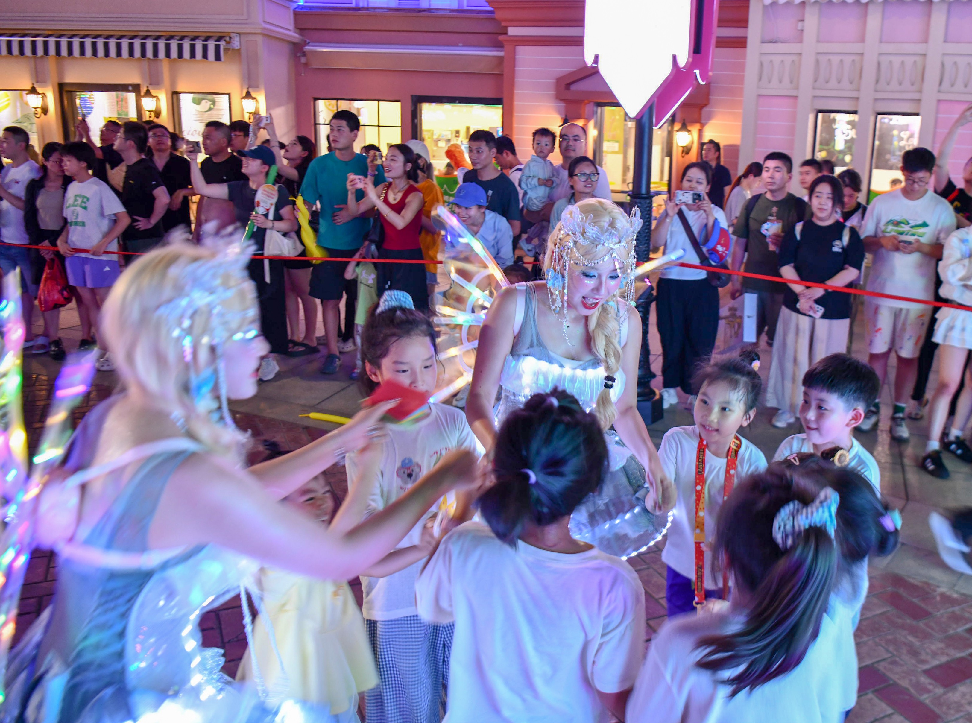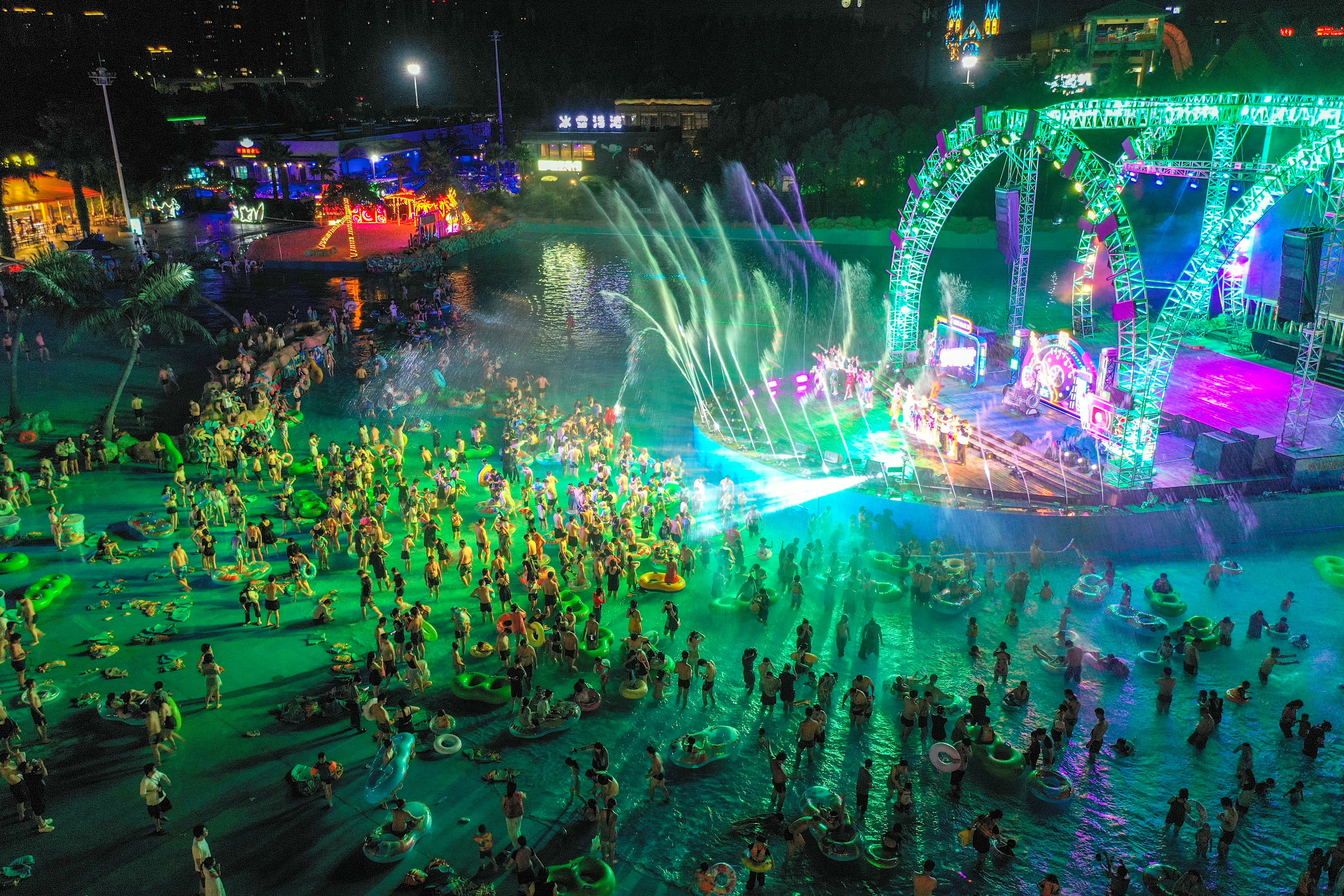暑期,方特水上乐园与梦幻王国也将同步开启12小时畅玩的“水陆同欢”模式。园内《大喇叭》《飓风湾》《天旋地转》等20余款水上项目,为游客提供丰富多样的玩水选择。此外,还有超多精彩演出互动,“夏日甜心女团”带来活力热舞,“燃情夏威夷巡游”展现异域风情,“音浪嘉年华”带领游客在造浪池中随音乐摇摆;水枪大作战、沙滩排球赛等互动游戏欢乐不断,夜晚更有震撼的水上电音节活动,灯光秀、水秀、喷火表演轮番登场,点燃夏夜激情,为游客打造清凉酷爽的水上狂欢。