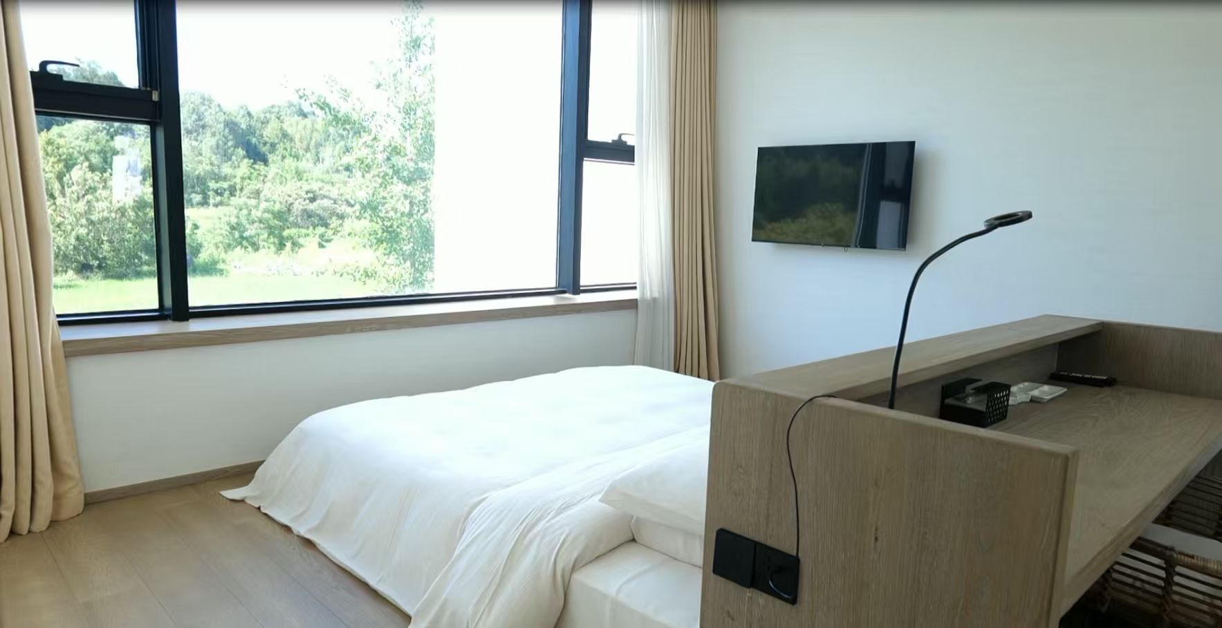 在休宁县渭桥乡渭桥村,有一家以田居艺术为特色的民宿。这家民宿融乡村田园生活与现代时尚元素为一体,其中 180°田园星空LOFT亲子套房最受追捧,全景落地窗将稻田、山林景致尽收眼底。