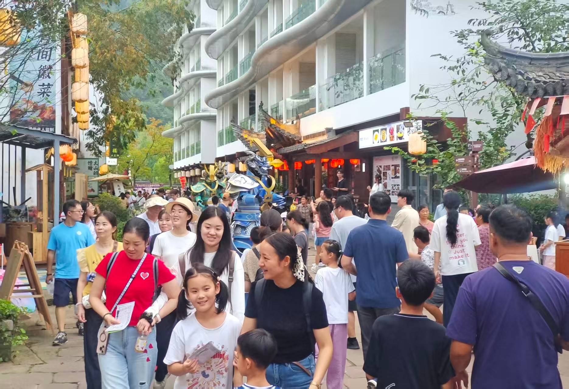 国庆中秋假期,休宁县齐云山生态文化旅游度假区“齐云逍遥街”正式开街,吸引众多游客前来游玩体验,开启国庆假期文旅热潮。