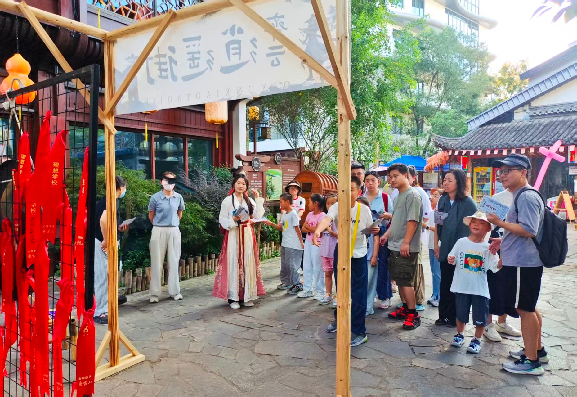 在活动现场,游客们使用度假区赠送的“逍遥券”购买各种消费产品。国庆期间,“齐云逍遥街”创新推出“门票+代金券”消费模式。“游客除了可以凭景区门票等消费记录直接进入逍遥街,还可购买29.9元逍遥街单业态门票,便可获得价值30元的代金券,该消费券在逍遥街绝大部分门店均可使用。”齐云山生态文化旅游度假区负责人李倩倩介绍道。
