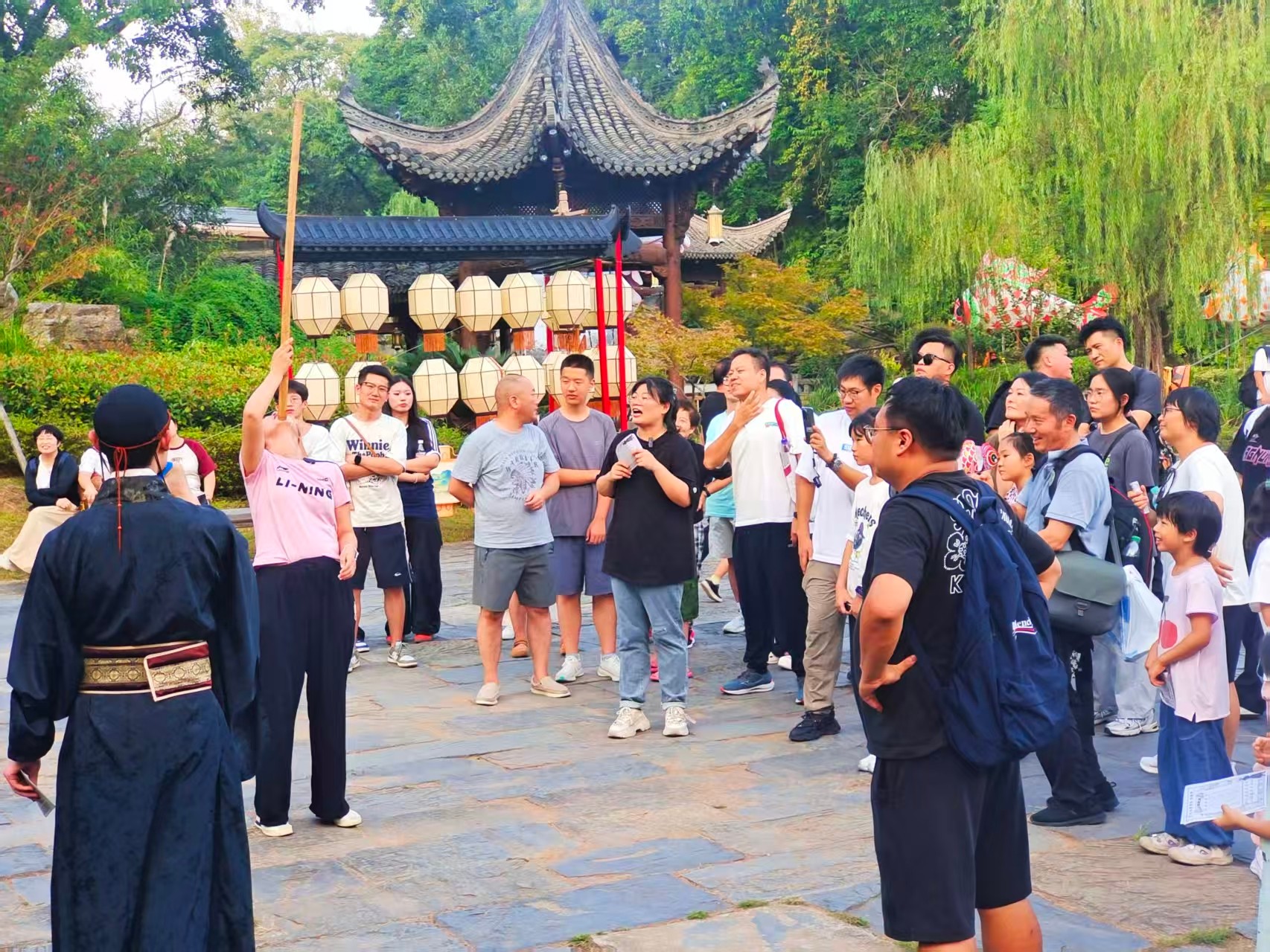 “齐云逍遥街”上,50项100多场次文旅互动场景缤纷上演。在福海区域,游客在“朝堂”上与“官老爷”斗智斗勇,杂技演员头顶由十几张桌椅堆叠而成的“龙头凳”,引来“哇”声一片;在逍遥街,游客跟随“侠女”修习太极剑法,在杂耍演员的指导下,快速掌握抛帽子戏法;在快活巷,游客在“当铺典拍”“鸿运骰坊”“玄机弹阵”等点位试试运气,赚取更多“银票”。