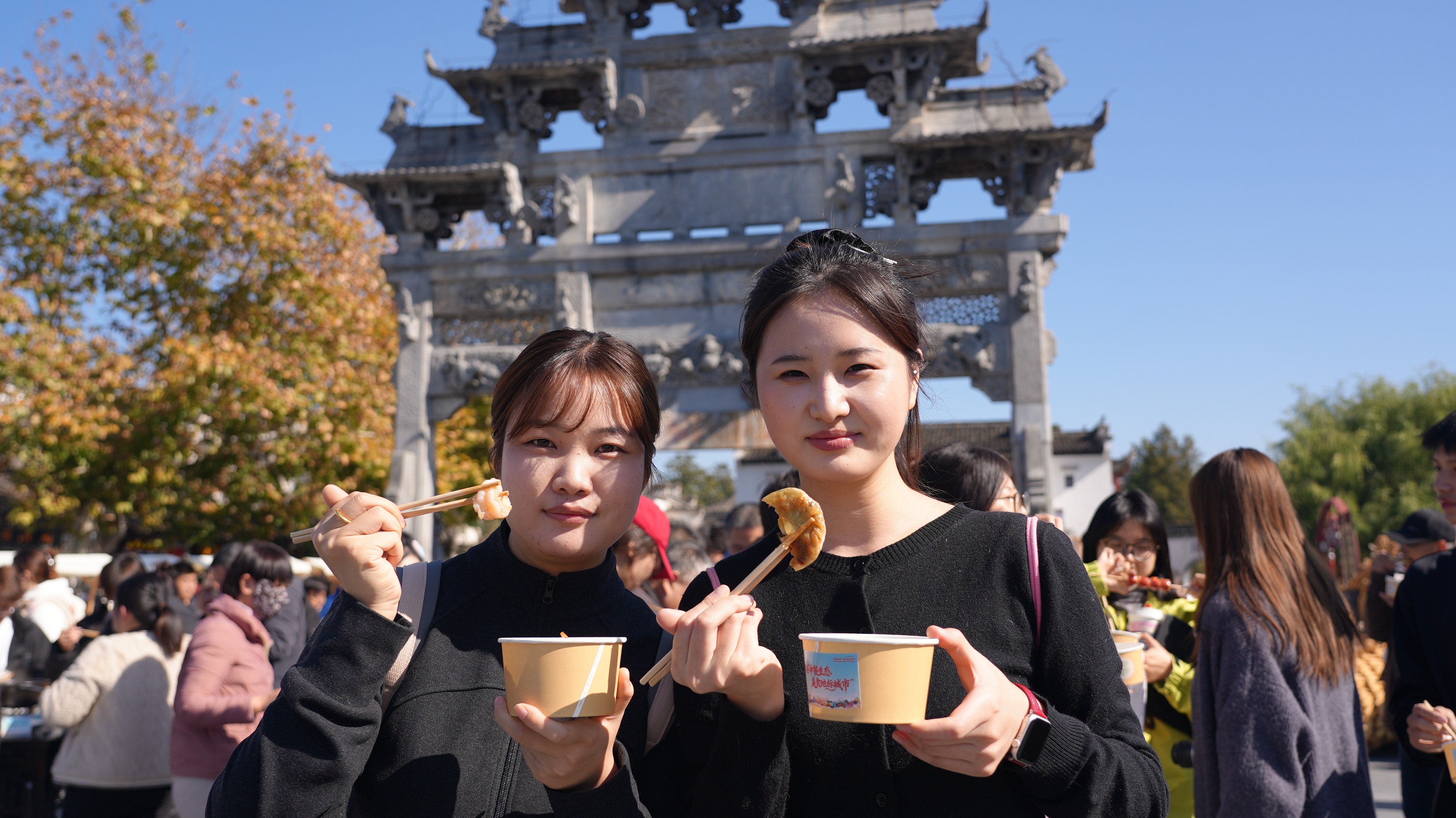 活动现场,13桌还原徽州传统待客礼仪的八仙桌宴席,让游客沉浸式感受“无徽不成席”的文化底蕴;20个特色展位集中呈现“五黑”美食、非遗技艺与中医康养服务,形成立体化消费场景。“不仅能吃到地道的五黑宴,还能亲手体验徽州糕点制作,这种旅行太有意义了。”来自芜湖的游客华女士对活动赞不绝口。这种“美食体验+文化感知+康养休闲”的融合模式,正是黟县文旅融合的创新实践。