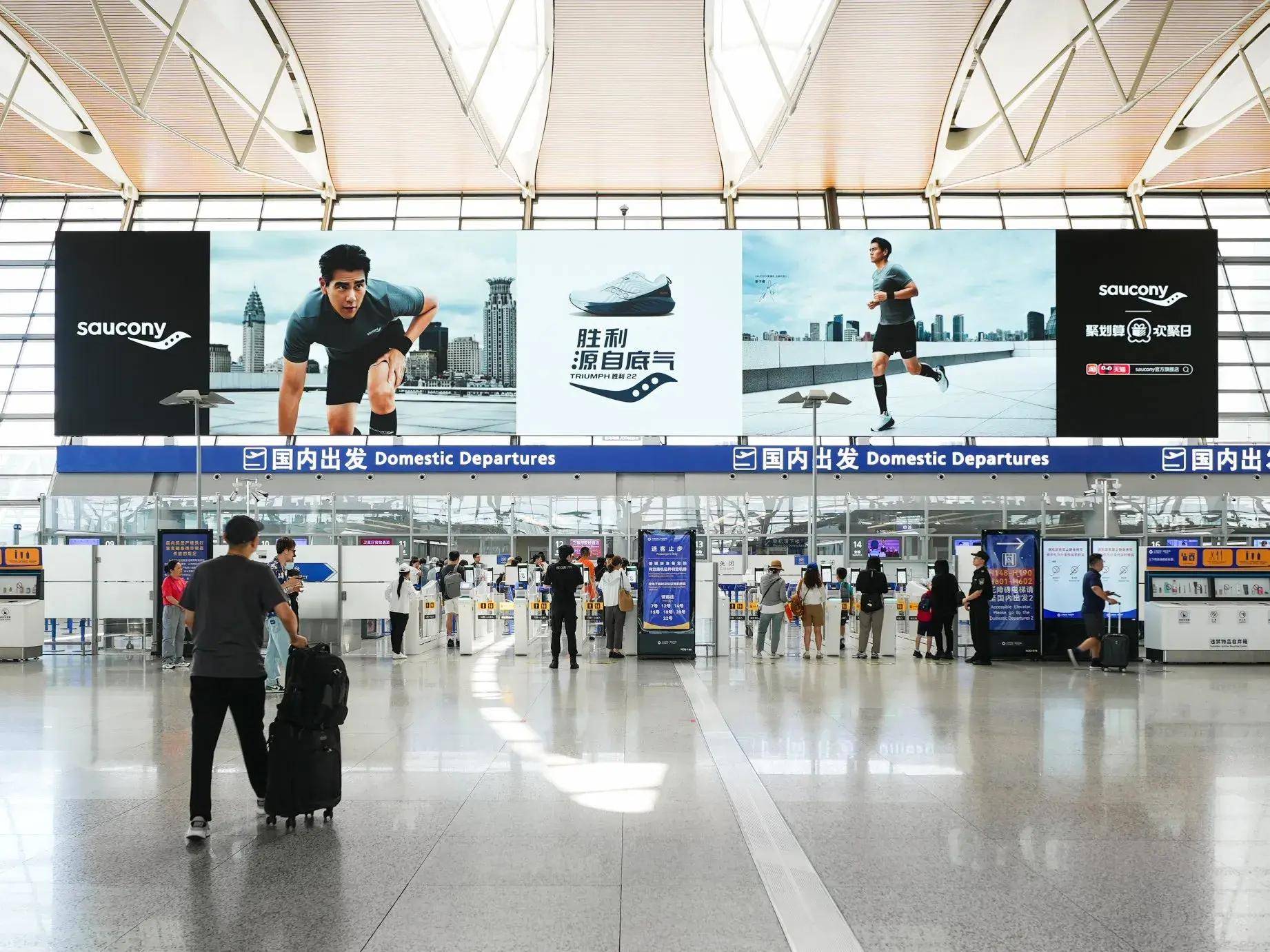 彭于晏搭乘跑者头等舱飞抵上海虹桥、浦东和深圳机场