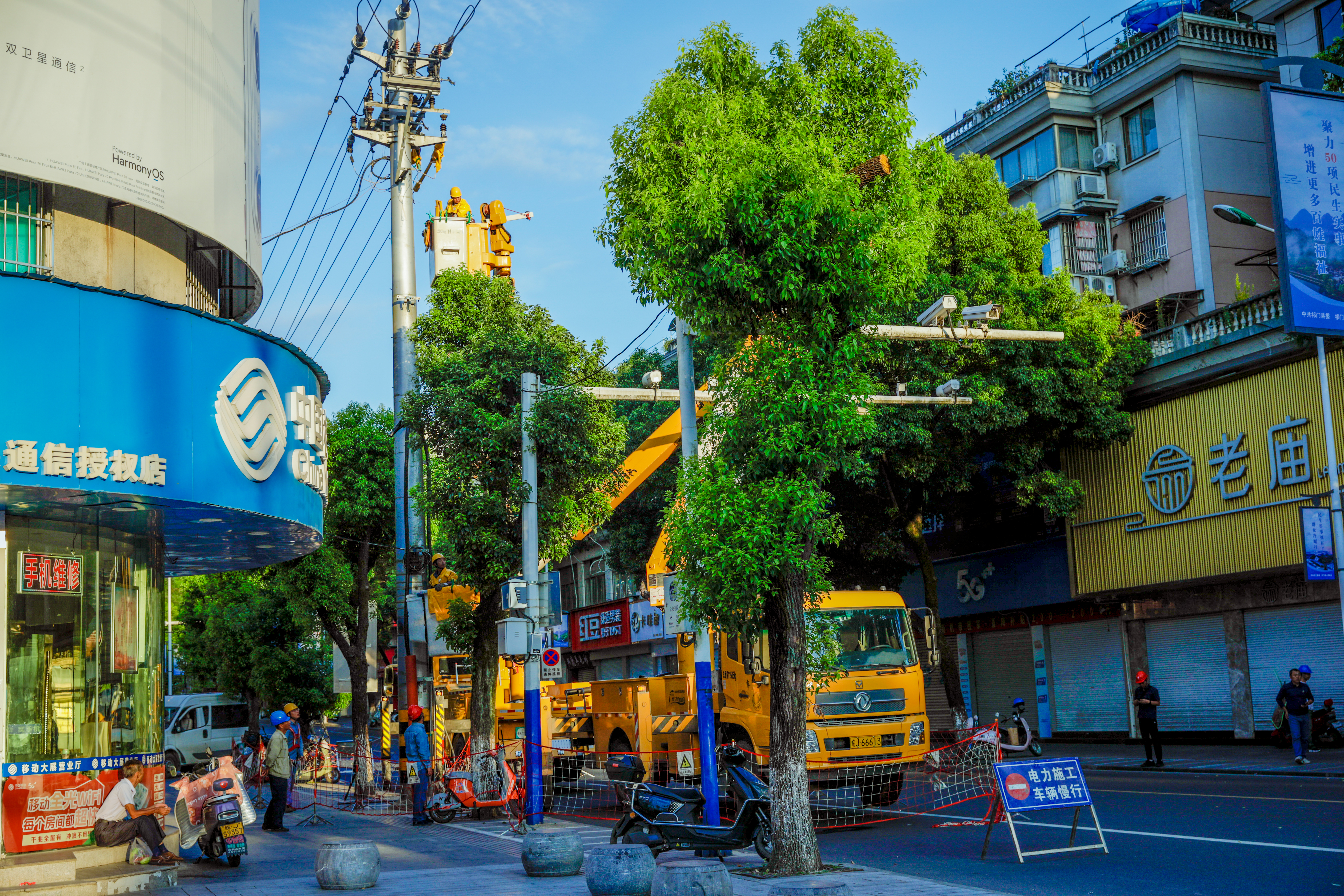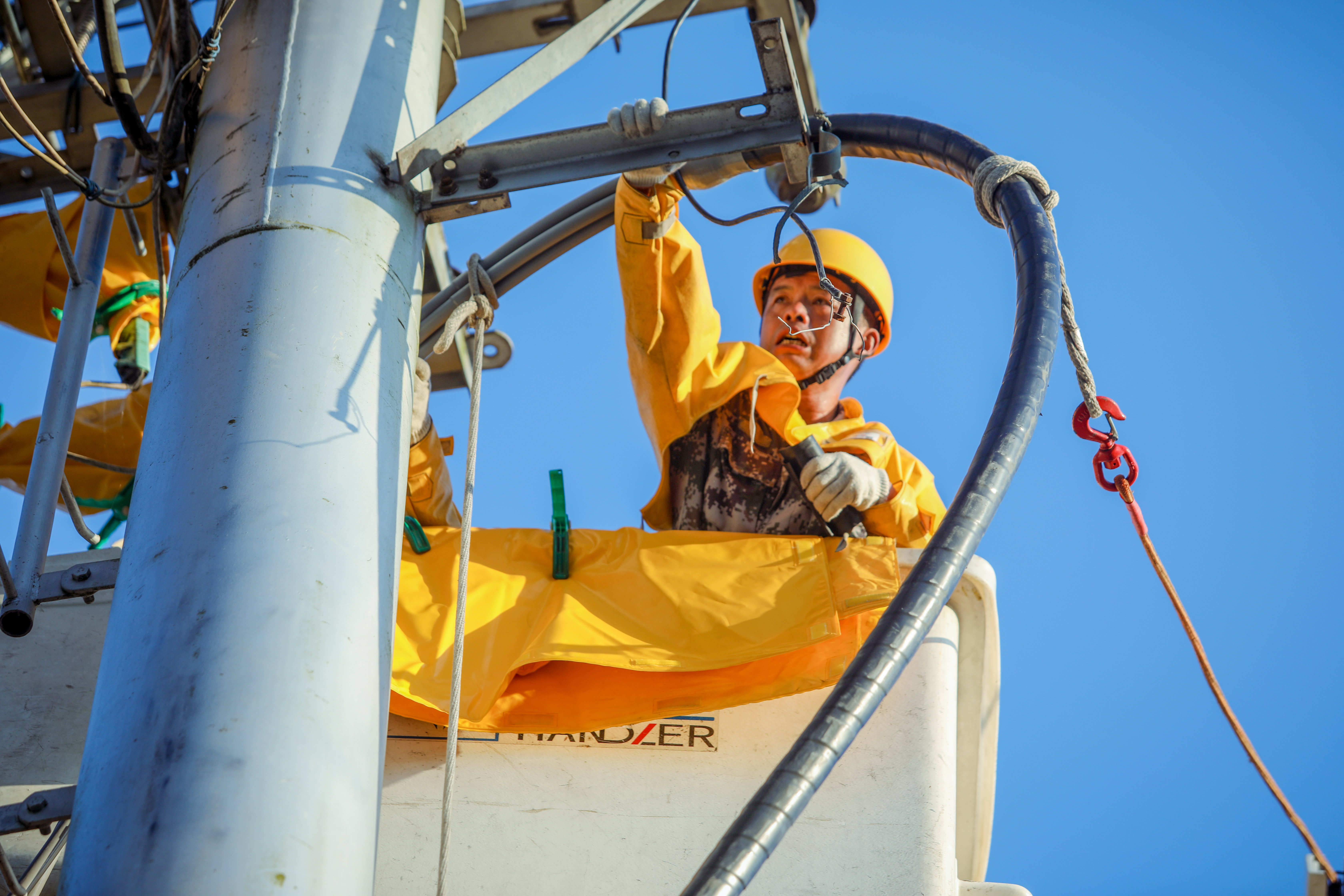 “太阳出来后,这些金属设备温度就比较高,一摸都很烫手。我们早晨5点就到现场开始工作,现在天气热得比较快,正常到11点就不能工作了。虽然浑身都是湿透的,但为了保障居民的安全用电,我们觉得这一切都是值得的。”祁门县供电公司运维班班长刘强说。