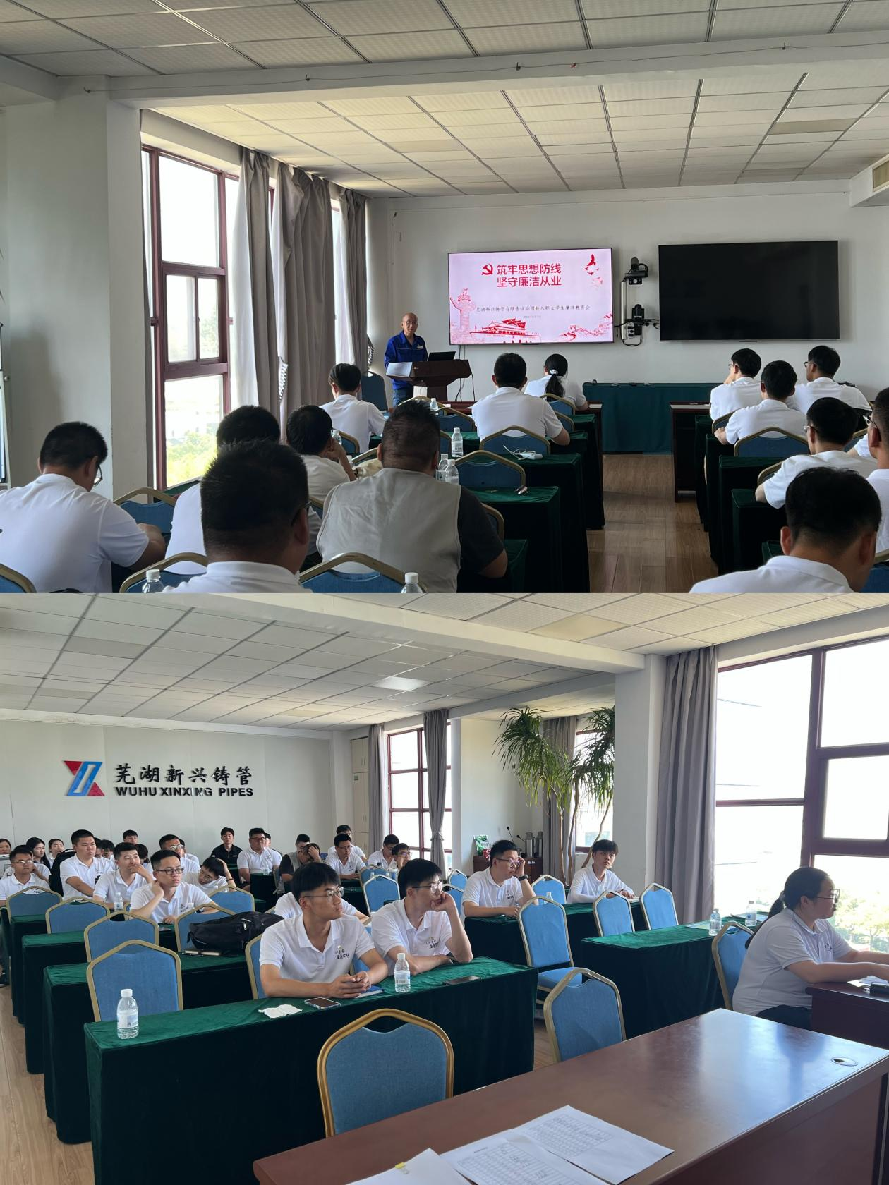 为新员工打好岗前廉洁“预防针”,促进廉洁自律,系好人生第一粒扣,8月7日,芜湖新兴铸管有限责任公司(以下简称“芜湖新兴”)纪委召开了新入职大学生集体廉洁教育会。