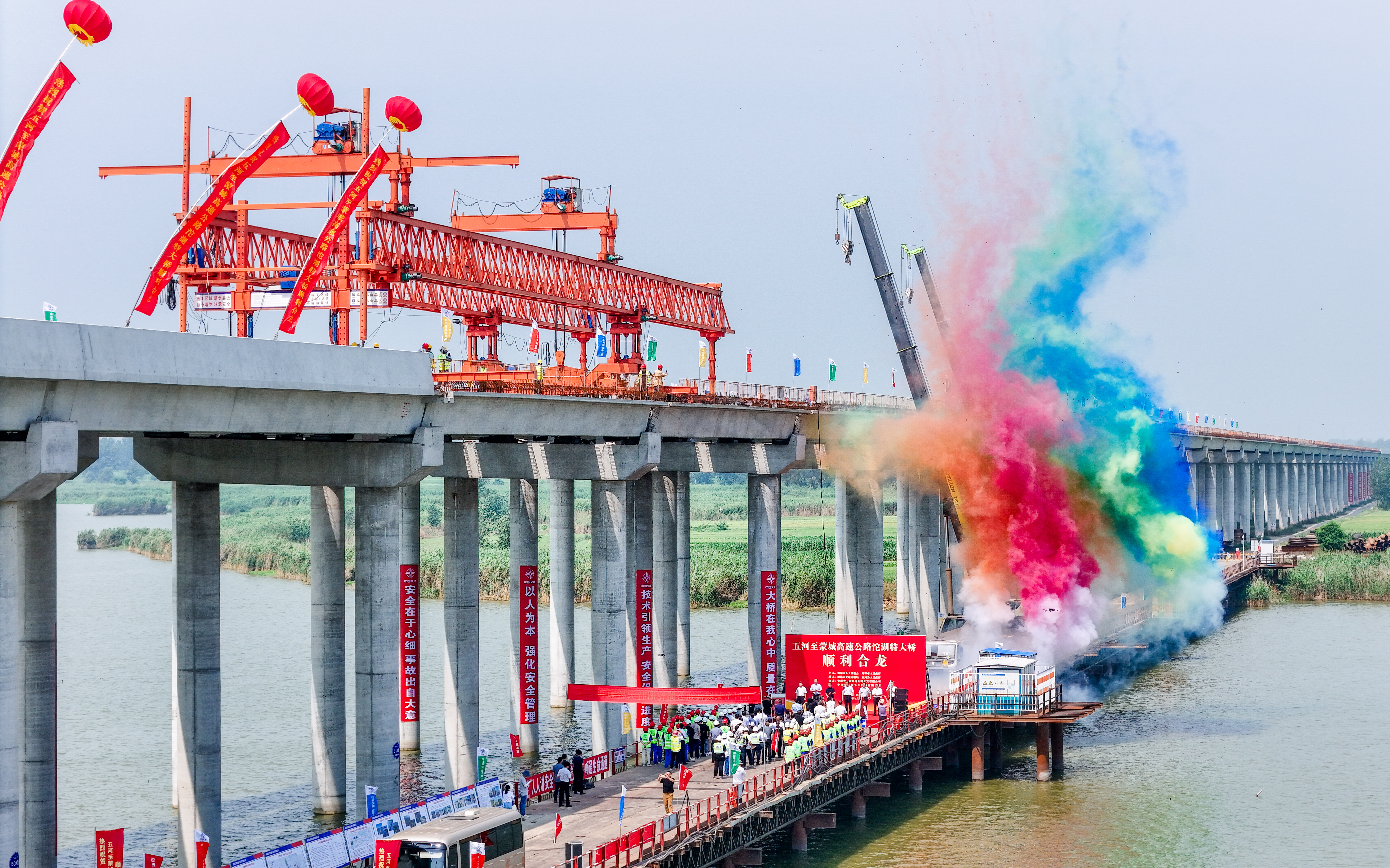五蒙高速沱湖特大桥顺利合龙