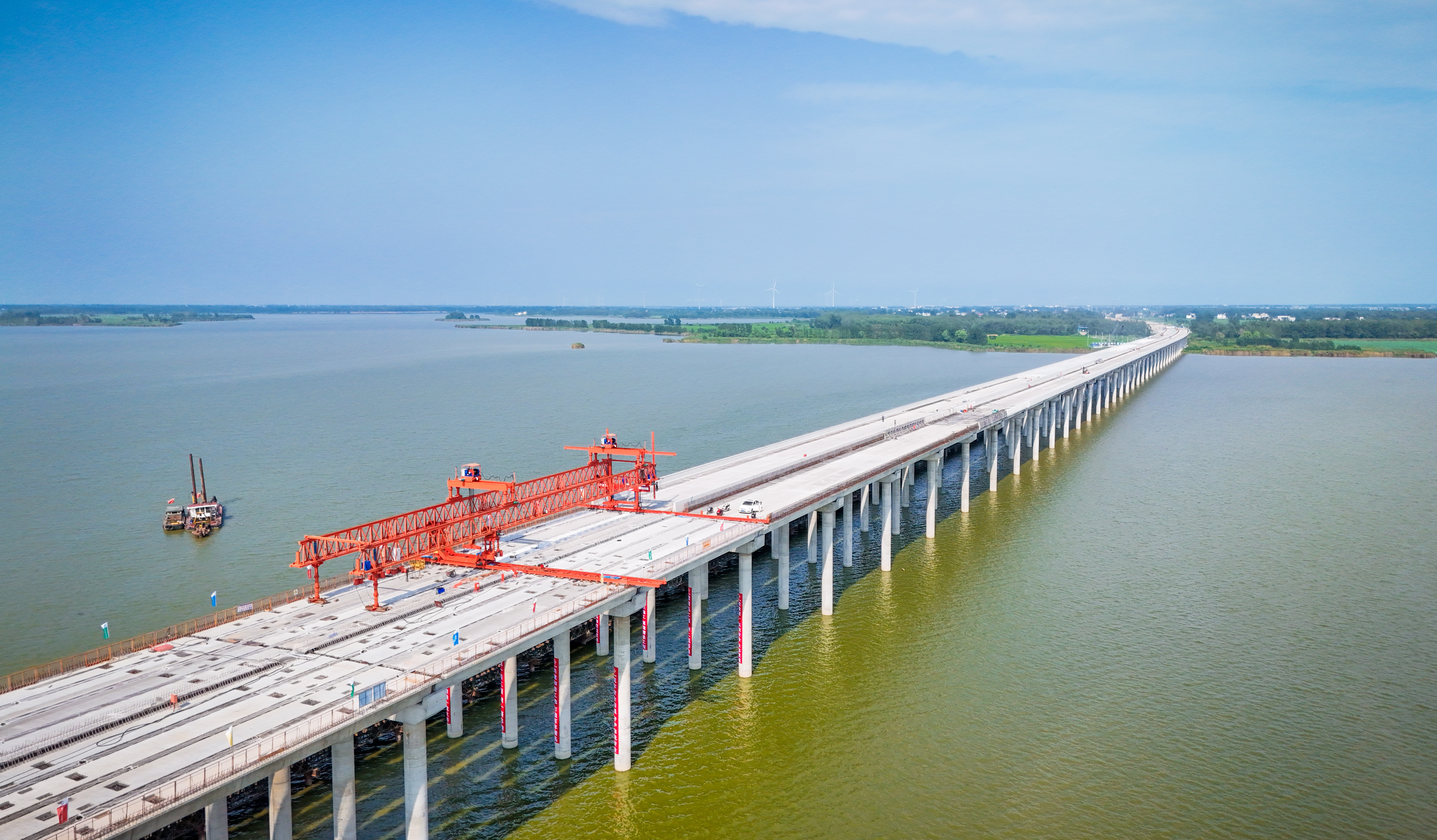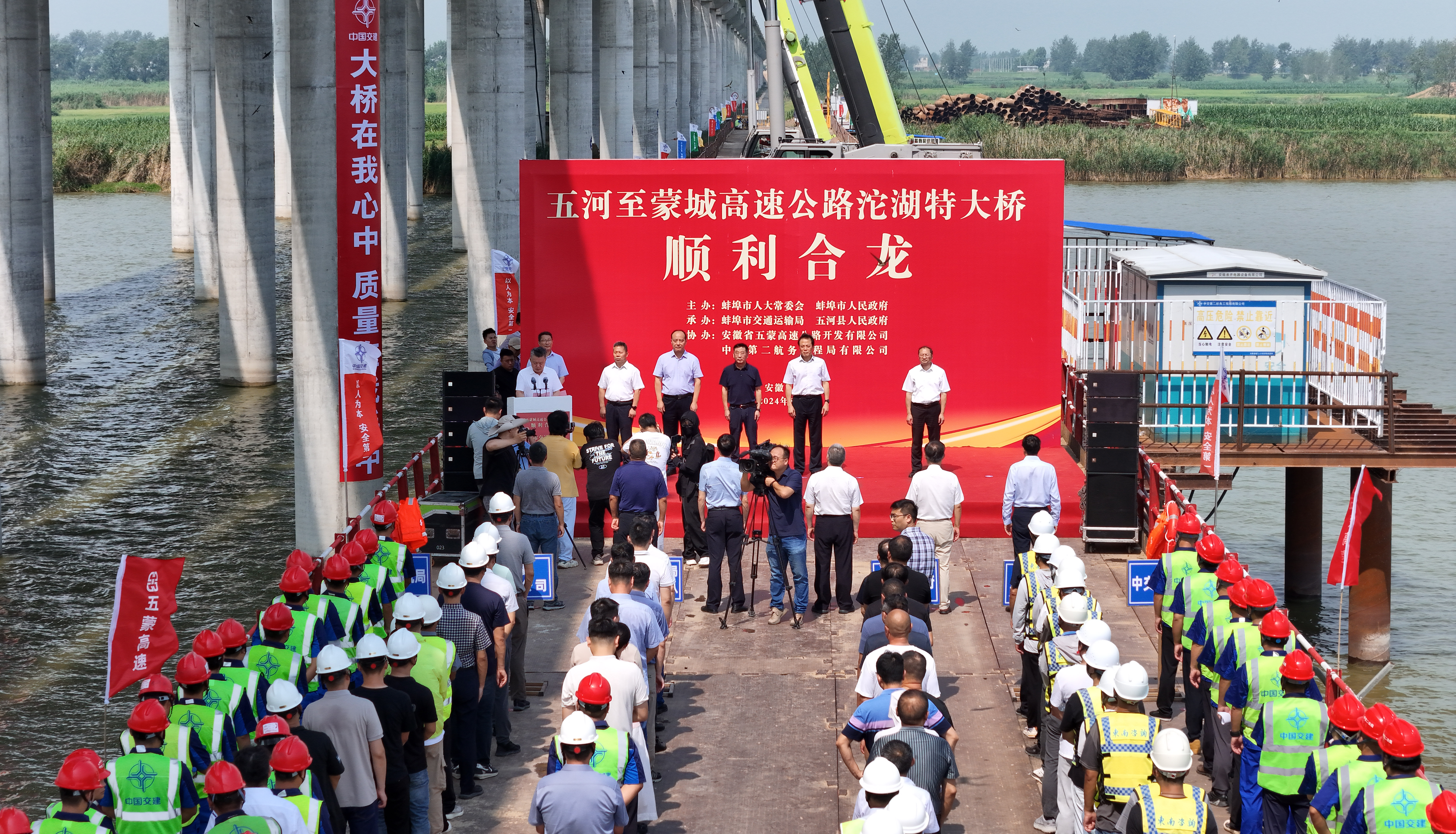 8月9日,安徽五蒙高速沱湖特大桥768榀箱梁全部架设完成,顺利实现合龙。