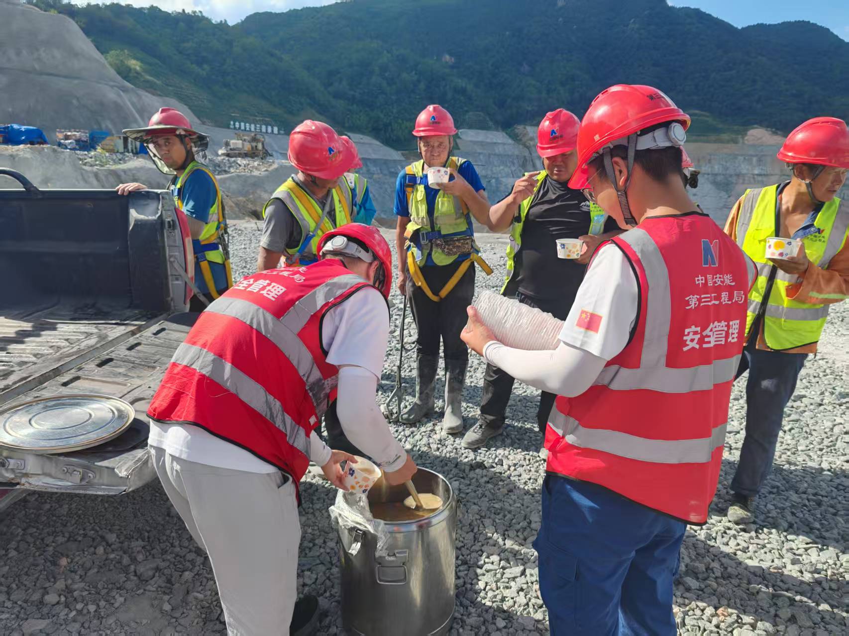 “来,师傅们,喝碗绿豆汤解解暑吧!”每天下午4点,项目部综合管理部都会准时将绿豆汤送至上下库大坝的施工区域。安全员李映一边麻利地为施工人员分发绿豆汤,一边递上藿香正气液,叮嘱道:“天气炎热,大家干活别太急,感觉不适随时告知。这药能预防中暑,记得按时服用。”