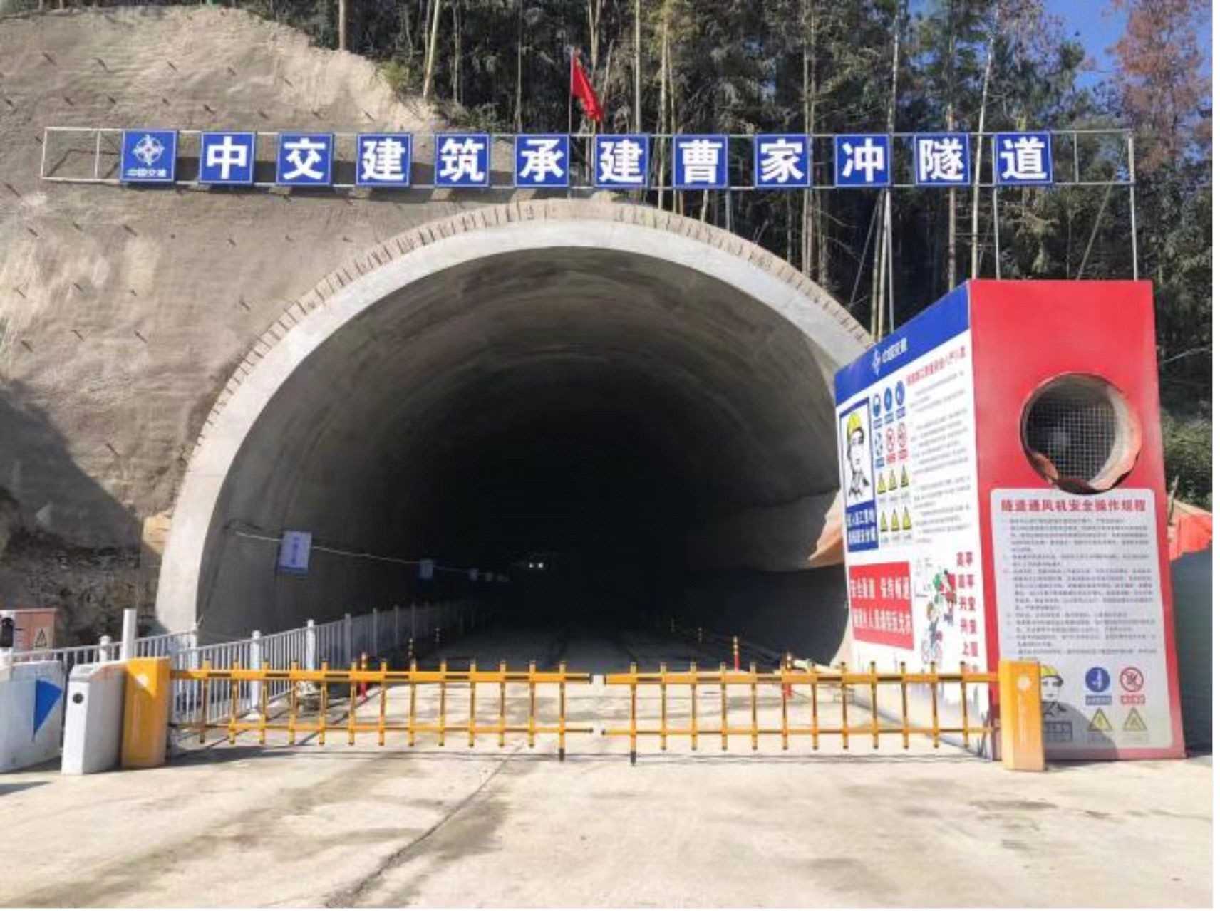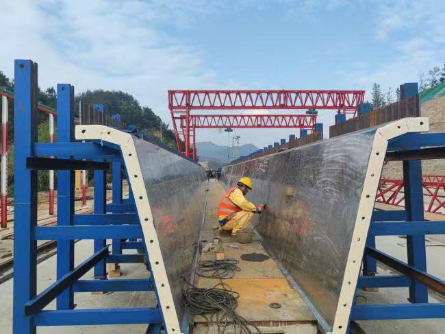 项目部积极推行项目标准化与信息化建设,施工便道、场站等建设标准化,隧道施工引入人脸识别门禁系统、视频监控系统等信息化管理手段。引入“四新技术”,不断提高施工质量、效率,确保施工安全。隧道电缆沟施工采用整体式电缆沟槽台车,线形直顺。预制箱梁采用不锈钢模板,外观较好。箱梁负弯矩张拉槽口采用定型钢模板,减少了槽口变形缺边掉角等现象。护栏施工使用提移模台车,确保了施工安全。
