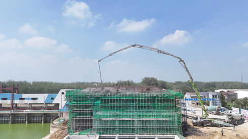 2025年7月25日,由安徽建工水利开发投资集团有限公司承建的怀洪新河灌区怀远段项目最后一个泵站四方湖站顺利完成主体结构封顶,标志着怀洪新河灌区怀远段项目主体机构基本完工, 为提升区域防洪排涝能力和保障农业灌溉用水奠定了坚实基础。