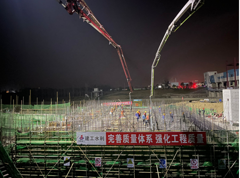 四方湖泵站工程自2024年10月开工以来,项目团队克服了复杂施工环境和不利天气条件等多重挑战。全体参建人员发扬“5+2”“白加黑”的奋斗精神,通过科学组织、精细管理,确保工程安全、质量和进度齐头并进。特别是在桩基施工阶段,采取三班轮换作业模式,实现24小时连续施工。各参建单位密切配合、通力协作,最终在汛期来临前圆满完成泵房封顶目标,整个施工过程历时200余天。