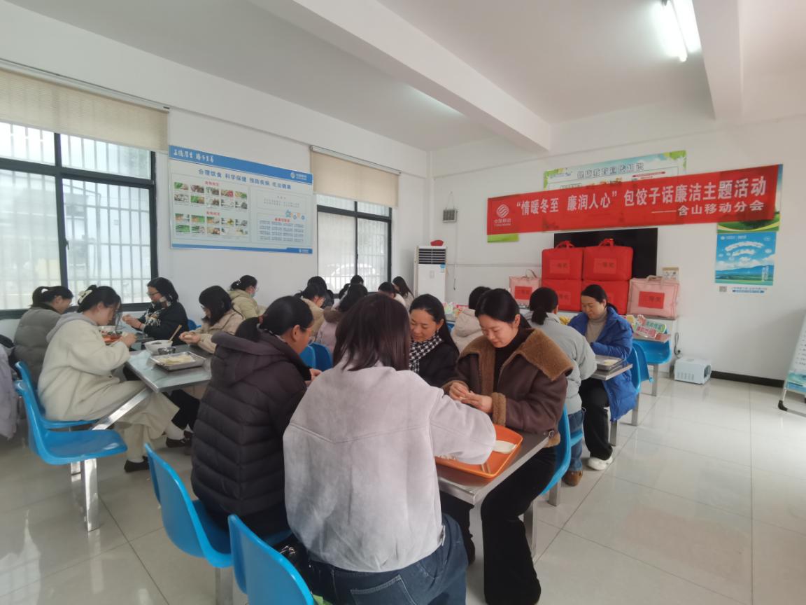 为传承中华优秀传统文化,深化廉洁文化建设,营造风清气正的企业氛围,中国移动安徽公司马鞍山分公司(以下简称:马鞍山移动)精心组织“情暖冬日 廉润人心”包饺子话廉洁主题活动,让干部职工在氤氲饺香中感受组织温暖,在互动交流中强化廉洁意识。