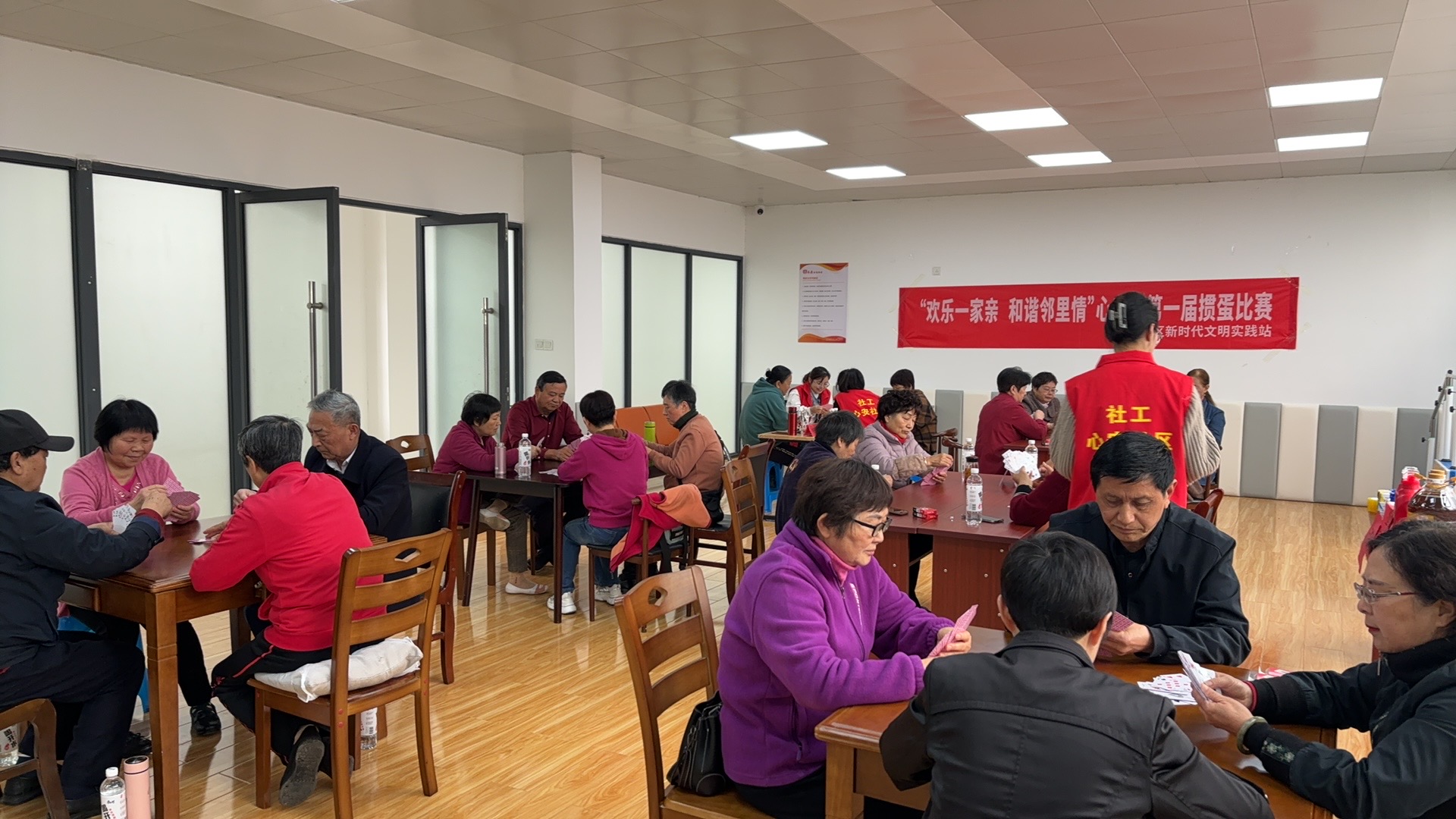 为丰富社区居民业余生活,调动大家参加集体活动的积极性,增进居民之间交往交流,同时提升心安社区为民服务水平和服务质量,近日,休宁县东临溪镇心安社区新时代文明实践站首次采用“点单式”工作模式,把主动权交给居民,让居民说了算。通过“群众点单”,4月10日心安社区在一楼活动室组织开展了以“欢乐一家亲 和谐邻里情”为主题的掼蛋比赛。