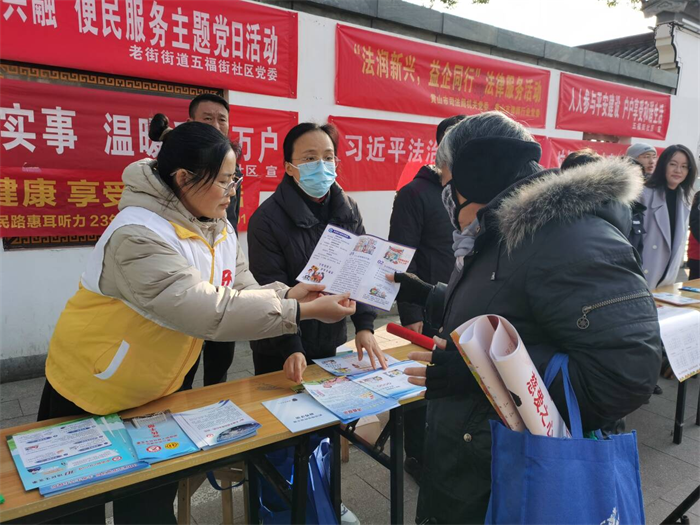 为推动基层治理提质增效,12月30日,黄山市屯溪区五福街社区党委联合黄山市律师行业党委、屯溪口腔医院、黄山百大集团、老街司法所、老街物业公司党支部、黄山惠耳听力等多家共建单位,共同开展“昱新同行 邻里共融”便民服务主题党日。通过整合多方资源、精准对接需求,将法律援助、健康义诊、家电维修、政策解读和冬日暖心礼包发放等“一站式”服务送到群众家门口,切实提升辖区居民及新就业群体的获得感、幸福感与安全感。