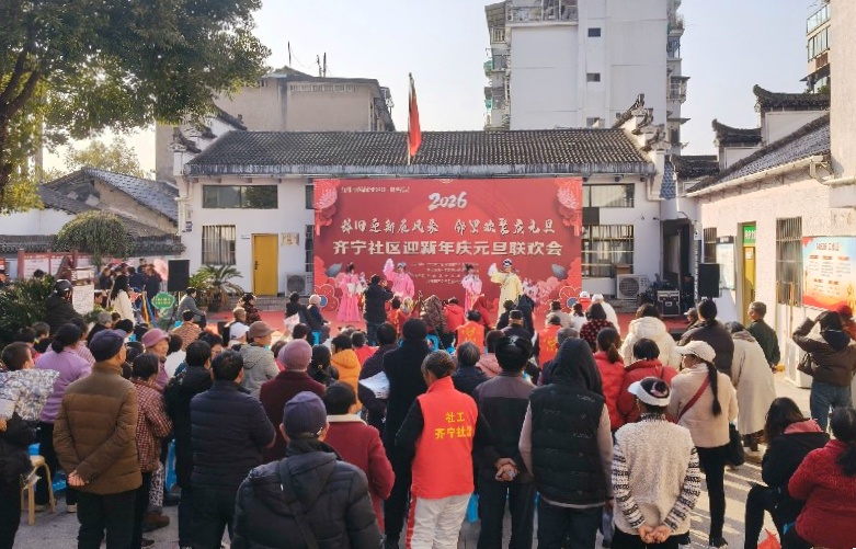 辞旧迎新暖意浓,邻里同乐庆元旦。12月30日下午,休宁县海阳镇齐宁社区大院人声鼎沸、喜气洋洋,“红领四季·暖冬行动”之“辞旧迎新展风采 邻里欢聚庆元旦”文艺演出精彩开演。社区工作人员与辖区居民欢聚一堂,用精彩纷呈的节目喜迎佳节,尽显社区和谐温馨的浓厚氛围。