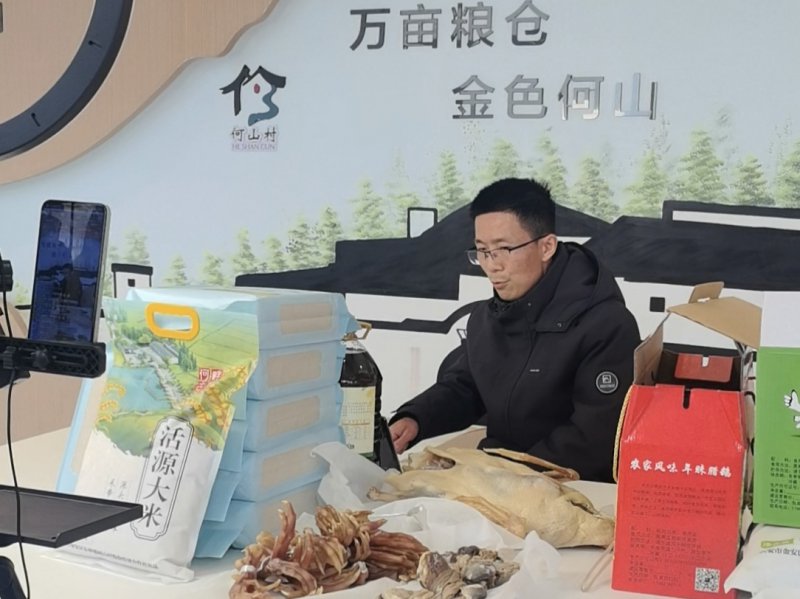 “咱们直播间的大米和菜籽油都是村集体经济下面的农业公司自己种的,全程机械化操作,要的就是把饭碗牢牢端在自己手中”。在六安金安区东桥镇何山村的和美乡村直播间,村书记李绪国正在热情洋溢地介绍自己的特色农产品。