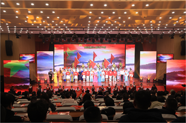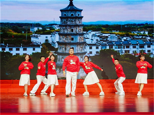演出涵盖舞蹈、诗朗诵、戏曲、小品等多种形式,从《万马奔腾启新程》的激昂奋进到《“十五五”畅想曲》的满怀憧憬,从《一马当先》的基层实干到《风吹马头墙》的徽州记忆,一个个节目以小切口折射大发展,用身边人讲述身边事,全面展现了全区干群踔厉奋发、勇毅前行的精神风貌,赢得现场观众阵阵掌声。演出在全体齐唱《歌唱祖国》的雄壮旋律中圆满落幕,激昂旋律汇聚成感恩奋进的磅礴力量。