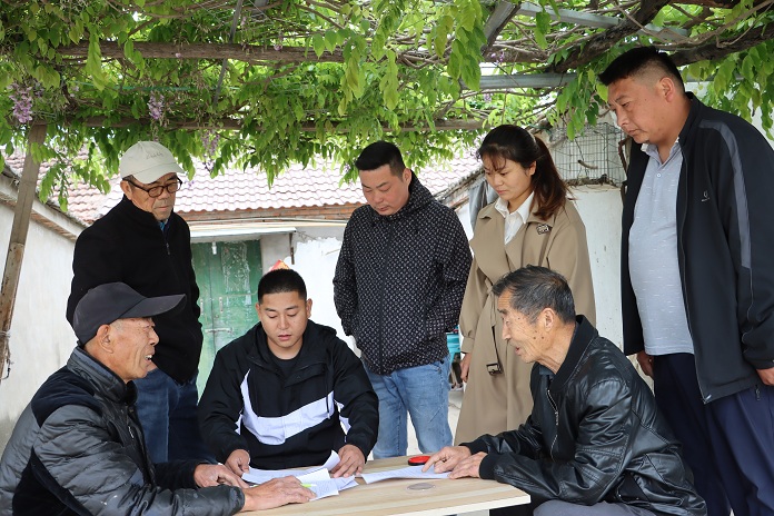 本网讯 4月28日上午,亳州市利辛县阚疃镇八里村后场庄,现场有六七位村民正在进行“旱改水”项目土地流转签约。