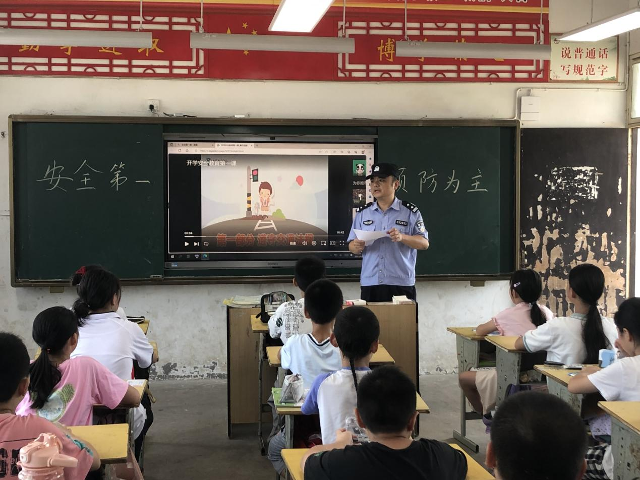 2023年秋季开学如期而至,为进一步加强校园安全教育,增强师生安全防范意识,提高自我保护能力,9月6日,怀宁县公安局秀山派出所组织民警深入秀山乡中心学校,开展"开学第一课"安全教育活动。