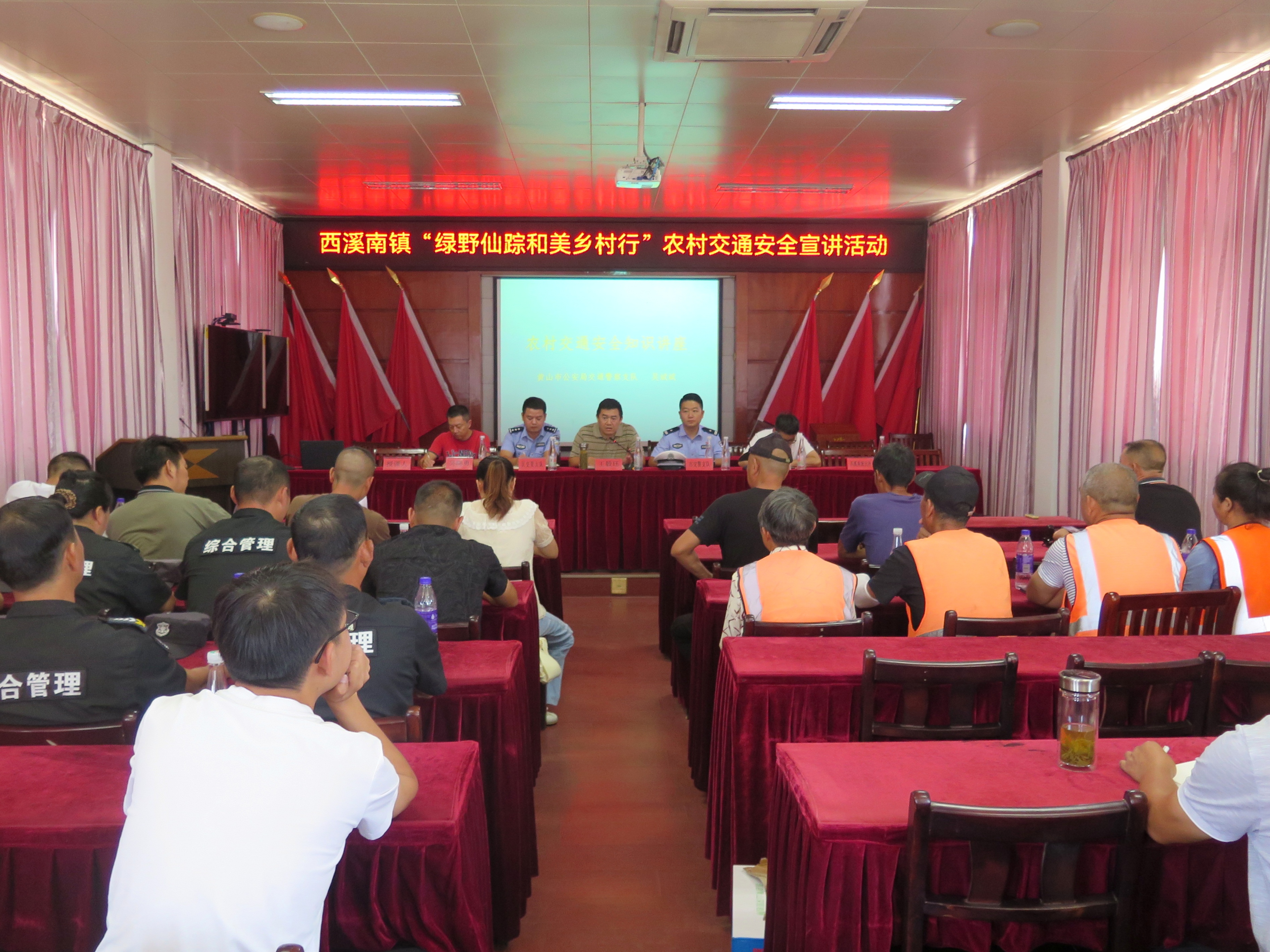 中秋、国庆双节即将来临,为切实做好镇域农村道路交通安全宣传教育工作,进一步提高农村群众交通安全意识和自我保护意识,9月8日,黄山市徽州区西溪南镇人民政府联合黄山市公安局交警支队、徽州区交通运输局、徽州区交管大队和西溪南派出所,组织开展以“绿野仙踪和美乡村行”为主题的农村交通安全宣讲活动,并邀请市“八五”普法讲师团成员黄山市公安局交通警察支队直属二大队副大队长吴斌斌进行专题宣讲。