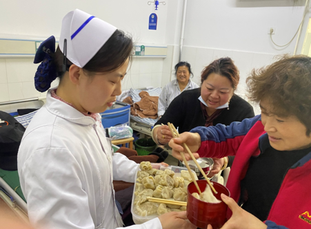 赛后,各参赛队伍队员还将包好的饺子,分装打包,由食堂烹饪后,分送到科室同事、患者手中,同享美食。