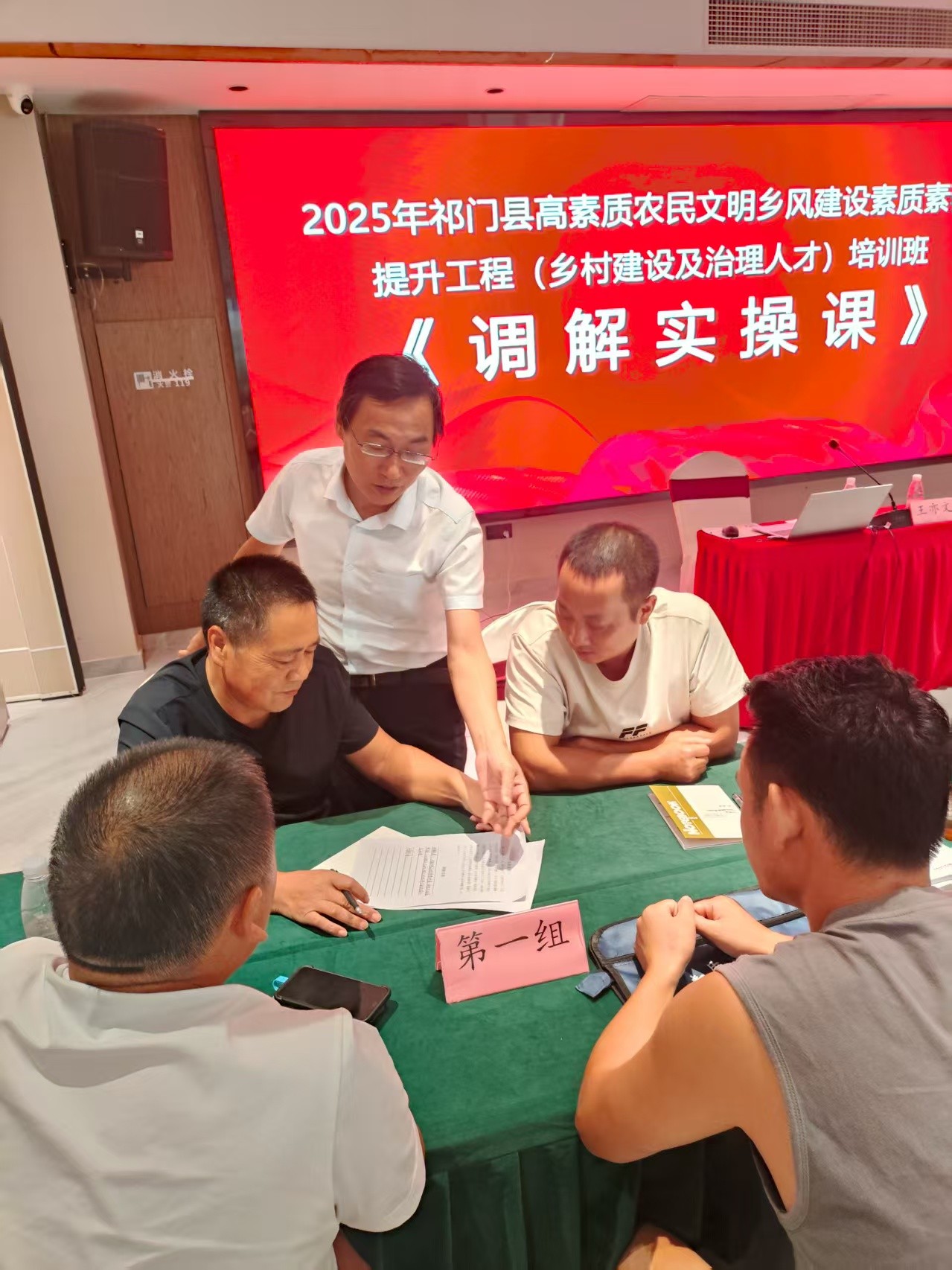 课堂上,授课老师将参训人员分成若干小组,精心设计了两个案例,让各组学员,结合自己的工作实际,针对案例中提出的矛盾,在充分讨论的基础上,分别写出《调解方案》和《人民调解协议书》。学员们则轮流扮演“调解员”,在老师的指导下,尝试倾听诉求、梳理症结、寻找平衡点。“以前遇到邻里吵架,要么劝两句就没辙,要么怕得罪人不敢管,现在知道了,先让双方把话说透,再找彼此的‘共同点’,效果完全不一样!”一位学员在实操后兴奋地说。从如何稳定情绪、如何换位思考,到如何运用乡规民约、如何借助村规民智,每一个技巧都紧扣乡村实际,每一次练习都贴近生活场景。