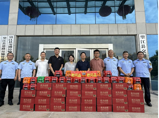 8月22日,骄阳似火,酷热难耐。安徽移动望江分公司负责人带队前往县公安局交警大队和交通局,开展了一场暖心的慰问活动,为奋战在高温一线的交通执法人员送上降温消暑物品,带去炎炎夏日的一丝清凉。