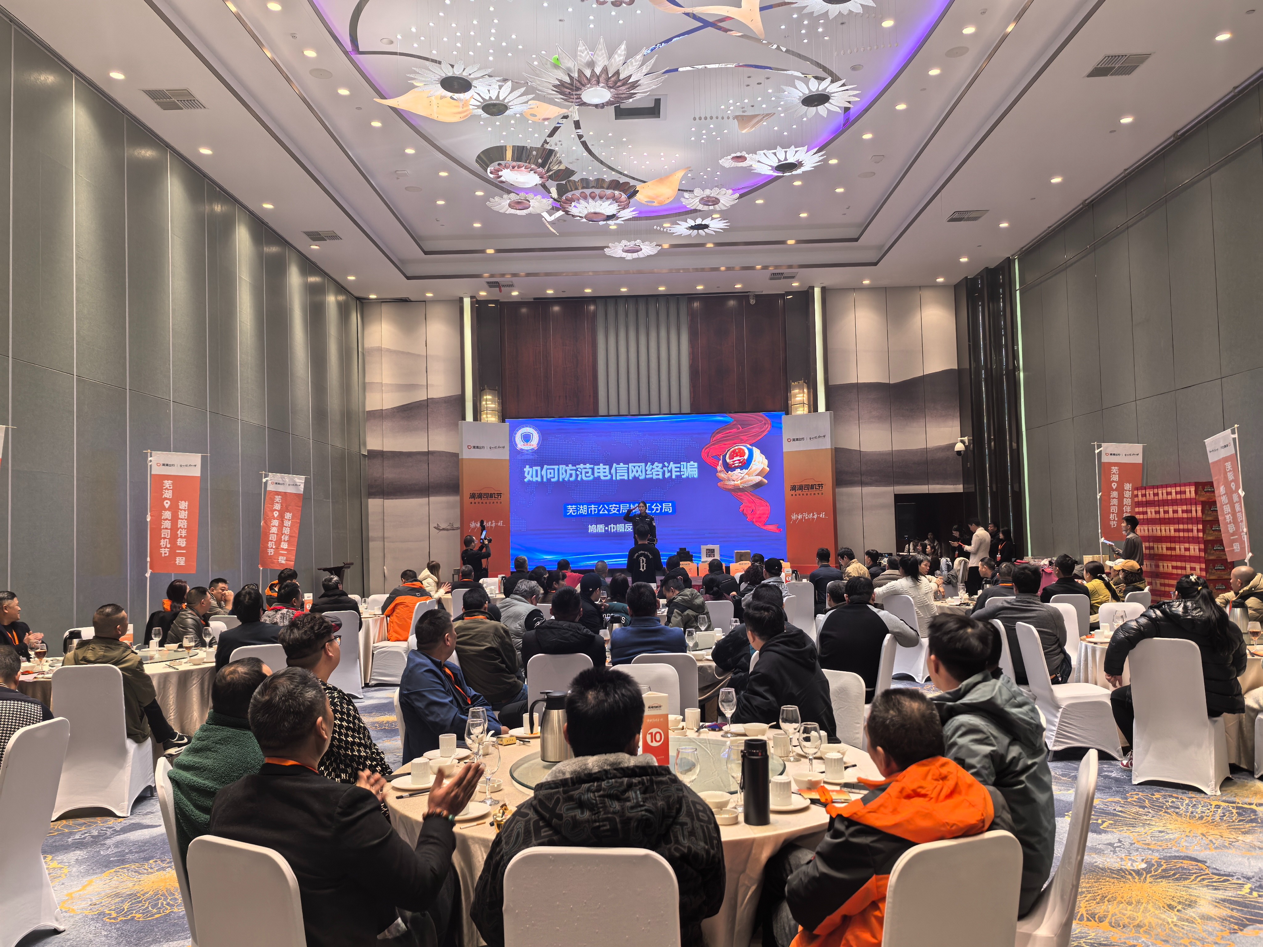 11月19日,芜湖市公安局鸠江分局“鸠盾·巾帼反诈队”走进滴滴司机节活动现场,面向广大网约车司机开展精准反诈宣传,以专业力量守护新业态从业者的“钱袋子”,进一步织密城市反诈防护网。
