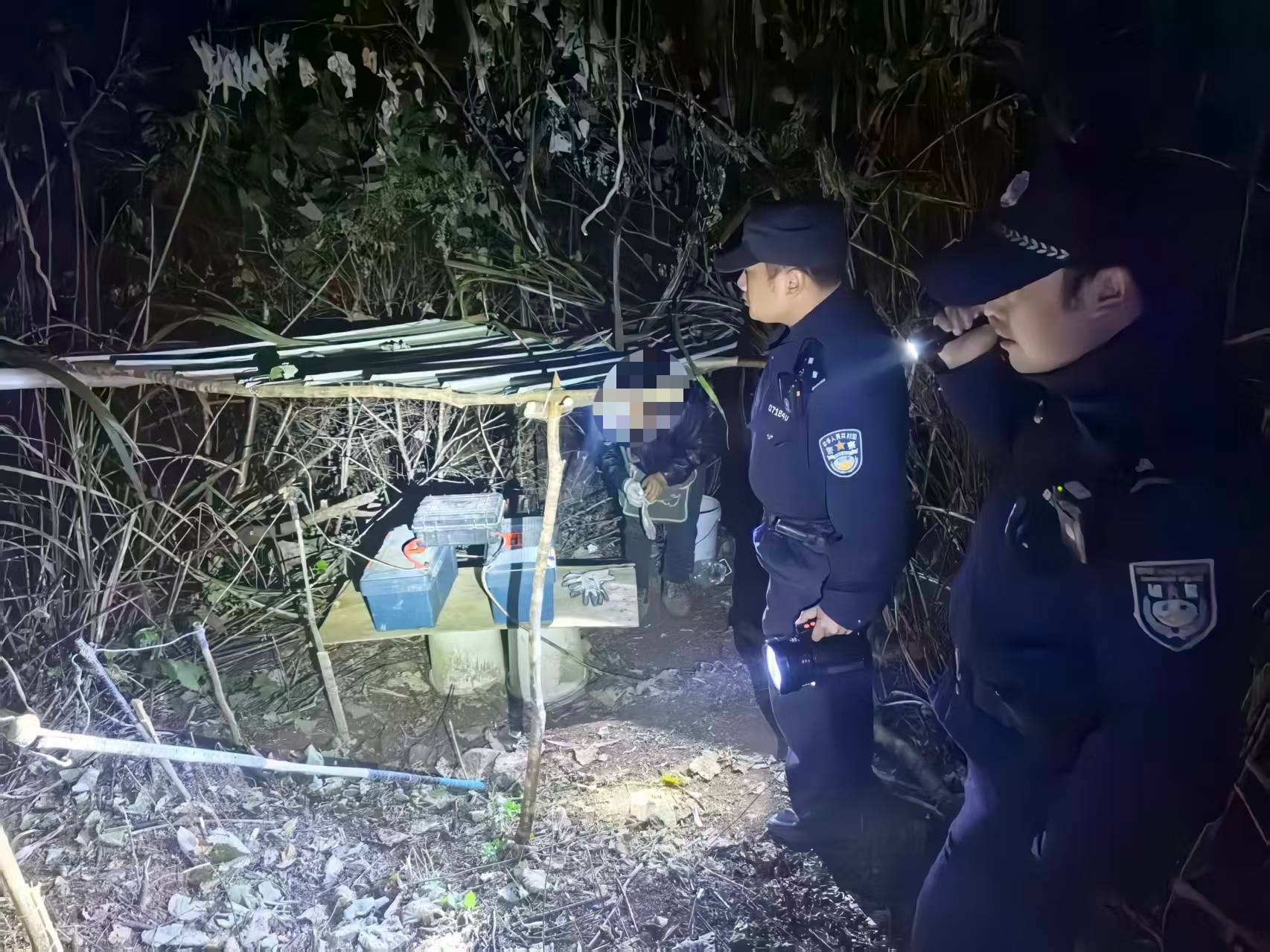 次日凌晨1时许,民警跟随涉案人员前往位于废弃矿山的第二处电网铺设点。该区域无路可通,紧邻数十米深崖,坡陡路滑,夜间行进极为危险,加之电网本身电压高达数千伏,拆除工作面临巨大挑战。在缺乏专业防护装备的情况下,民辅警摸黑在山间艰难行进一公里,凭借勇气与经验,最终成功将这套非法高压电网安全拆除。
