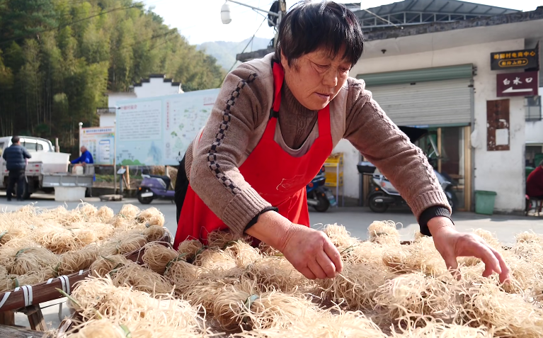 休宁县榆村乡是远近闻名的红薯粉丝特色村,每年入冬以后,家家户户忙着加工、晾晒红薯粉丝。在寒冷的冬季,一碗热气腾腾的红薯粉丝煲便是当地村民和外地游客的心头之爱,也是冬日里不可或缺的一份温暖。