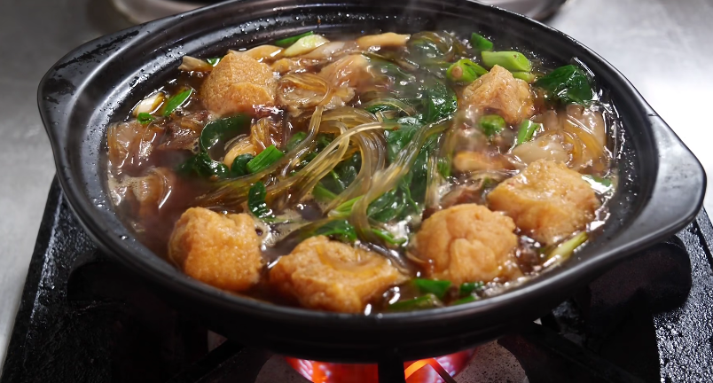 食材好,是烹饪美味佳肴的基础要素。当地人用当地的红薯粉丝来制作粉丝煲,味道正宗,口感更佳。红薯粉丝煲虽然是一道普通的家常菜,但制作起来也颇有讲究。村民将新鲜菠菜和凤尾菇洗净之后,铺在砂锅的底部,再将浸泡了4个小时以上的红薯粉丝放入砂锅中。随后把卤制好的牛肉切成薄片,依次铺在粉丝上面。为了口感更佳,还要加入几个豆腐泡,淋入浓稠的卤牛肉汤汁,再加入荤油,倒入开水。