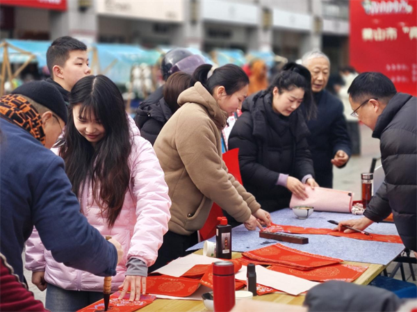 为提升活动吸引力,现场特别设置了互动体验区,通过写春联、趣味投圈等民俗活动,让求职者感受浓厚的节日氛围。青创集市专区集中展示了徽州特产及手工艺品,实现“逛集市、办年货、选好岗”一站式体验,实现就业服务与民俗文化的有机融合。