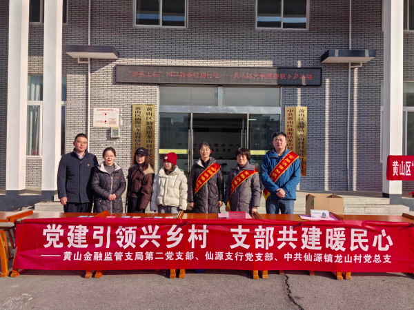 为切实发挥党支部战斗堡垒作用,将党组织的关怀送到群众心坎上,近日,黄山市黄山区仙源镇龙山村党总支以春节为契机,联合黄山金融监管支局第二党支部、仙源支行党支部在村委会广场开展“党建引领兴乡村 支部共建暖民心”志愿服务活动,组织党员、入党积极分子与村民一起写春联、送祝福,同时将专业的金融消保知识送到村民“家门口”,用实际行动诠释党员使命担当。