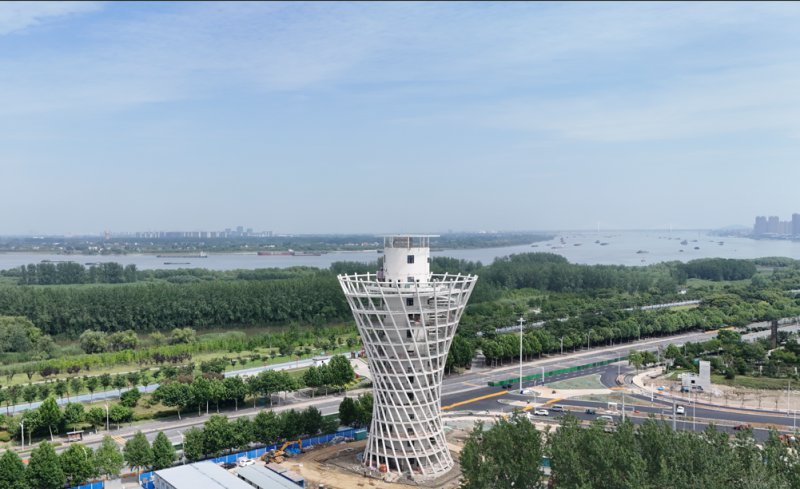 风塔地上12层,建筑高度57.75米,结构由外围钢架和剪力墙核心筒组成。其设计兼顾功能与美学,凭借独特的螺旋式网状结构和“小蛮腰”造型,荣获2025年度安徽省“钢结构优质工程”。塔内设有一部载重1350公斤的电梯,可直达12层观景平台;外围螺旋步道虽暂不开放,但仅凭平台上的360度视野,已足以让市民将江城天际线与长江壮景尽收眼底。