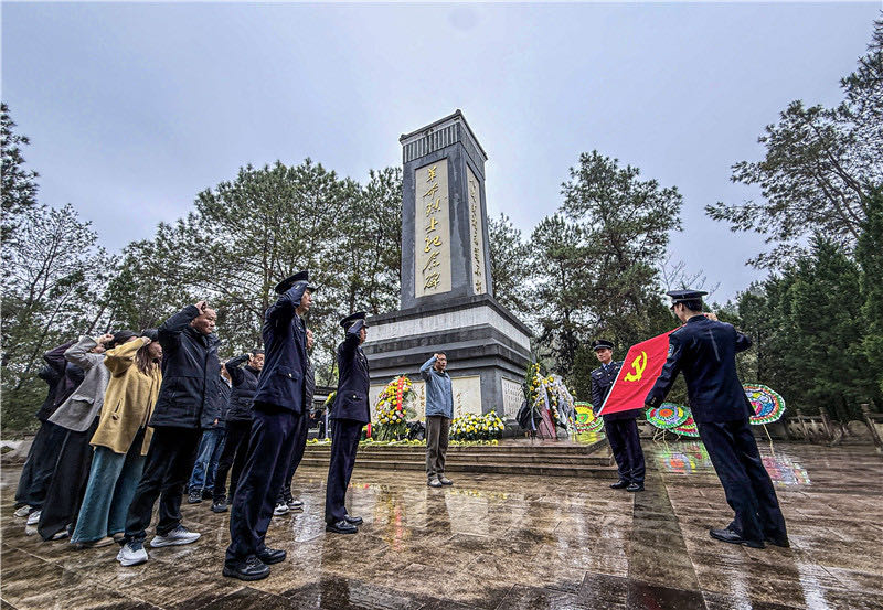“我志愿加入中国共产党,拥护党的纲领,遵守党的章程……” 在鲜红党旗下,全体党员重温入党誓词,铿锵誓言回荡陵园上空,进一步坚定理想信念、凝聚奋进力量。活动最后,双方在公墓指定区域合影留念,记录警地共建的珍贵瞬间。