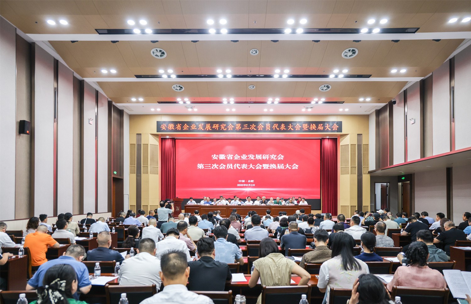 8 月 2 日,安徽企业发展研究会(以下简称研究会)第三次会员代表大会暨换届选举大会在位于合肥庐阳区的中安华力建设集团有限公司召开,190多家会员单位代表参加会议。