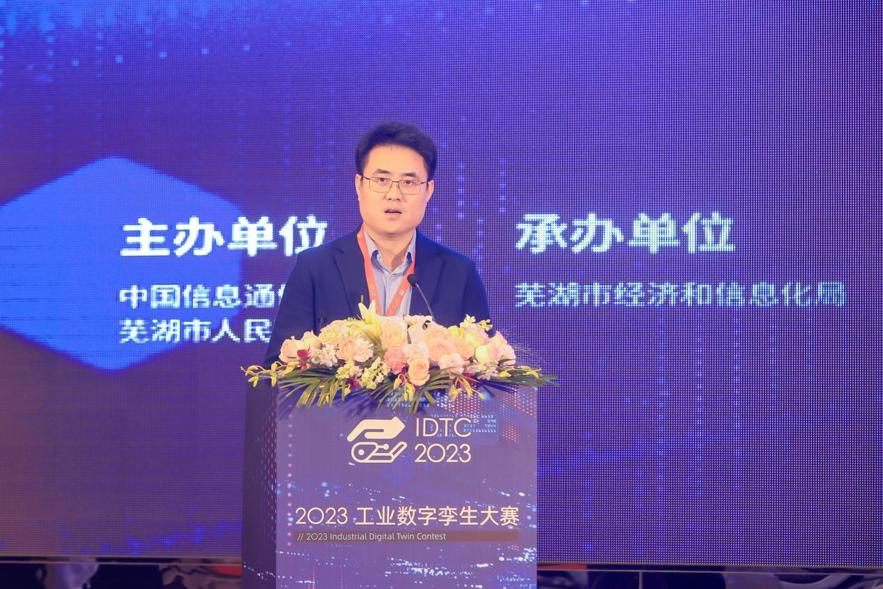 芜湖市经信局二级调研员陈传宏致欢迎词,他表示,工业数字孪生作为两化深度融合的重要方向,是工业互联网落地的新应用、新场景,也是企业数字化转型新的突破口。本次工业数字孪生大赛有利于激发国内工业数字孪生技术创新热情和活力,营造良好的数字孪生应用氛围,提升芜湖产业信息化水平,推动制造业高质量发展。