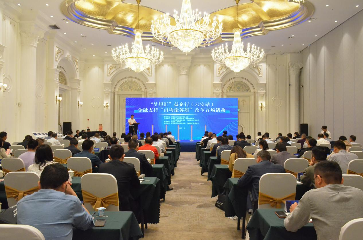 会上,来自省经信厅、六安市经信局、霍邱县人民政府、“亩均论英雄”改革服务联盟、徽商银行的五位来自政府和银行的代表共同上台,启动“梦想汇”益企行金融支持“亩均论英雄”改革六安站首场活动。