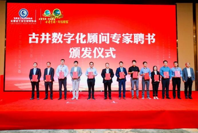 会上,颁发了古井数字化顾问专家聘书;为安徽省工业互联网协会数字化绿色化食品分会(筹)授牌,旨在积极推动食品、白酒等行业经济转型升级和可持续发展。