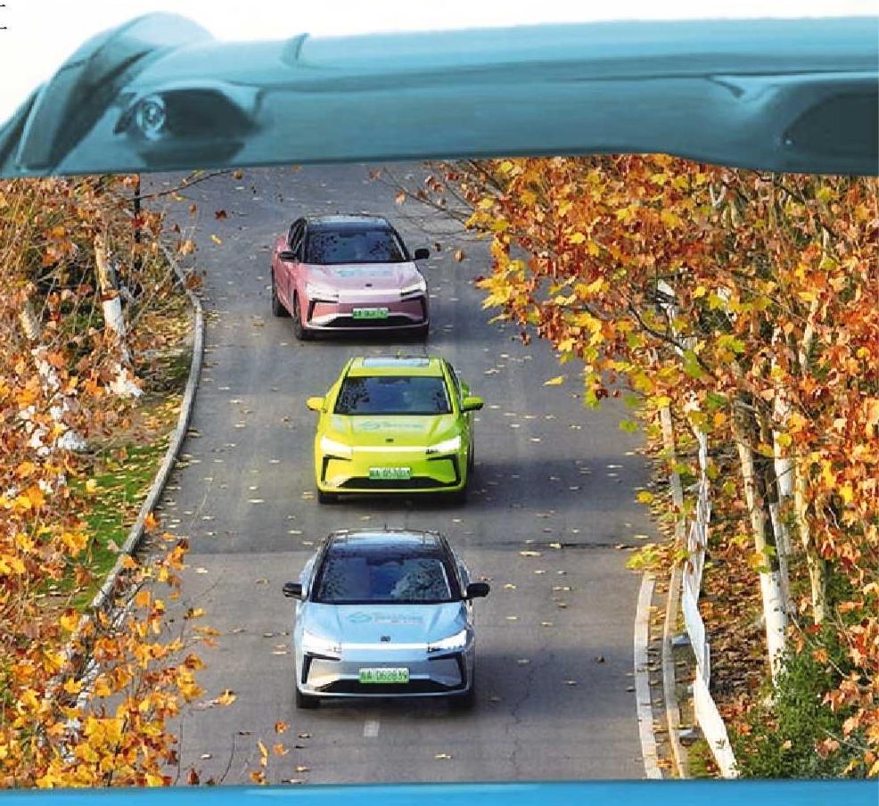 江淮新能源汽车驶过合肥大蜀山国家森林公园。(资料图片)记者 徐国康 摄