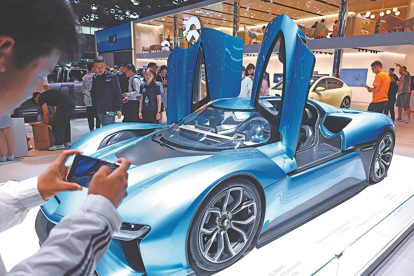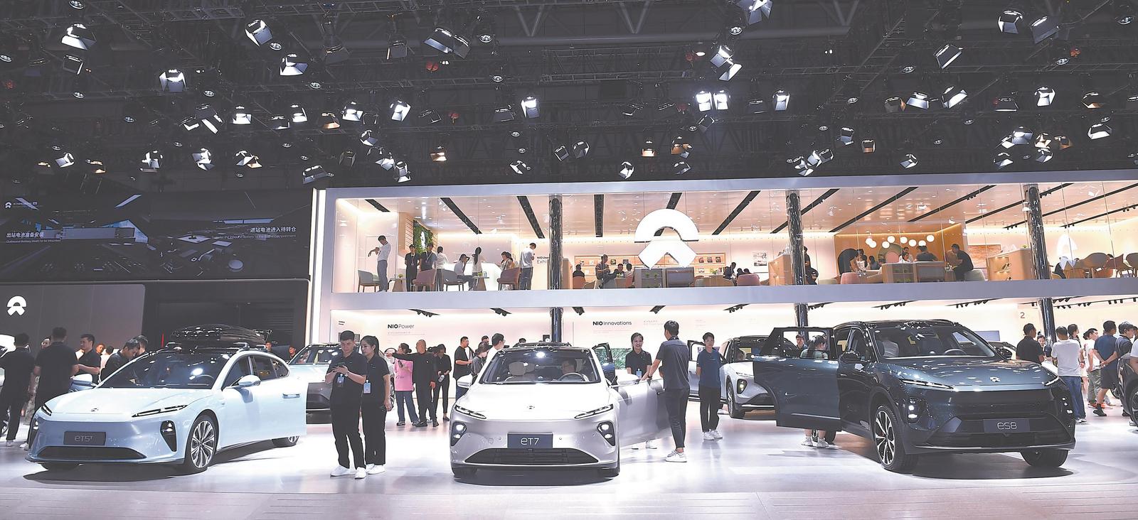 蔚来新能源汽车展区吸引众多消费者观看。通讯员 张大岗 摄