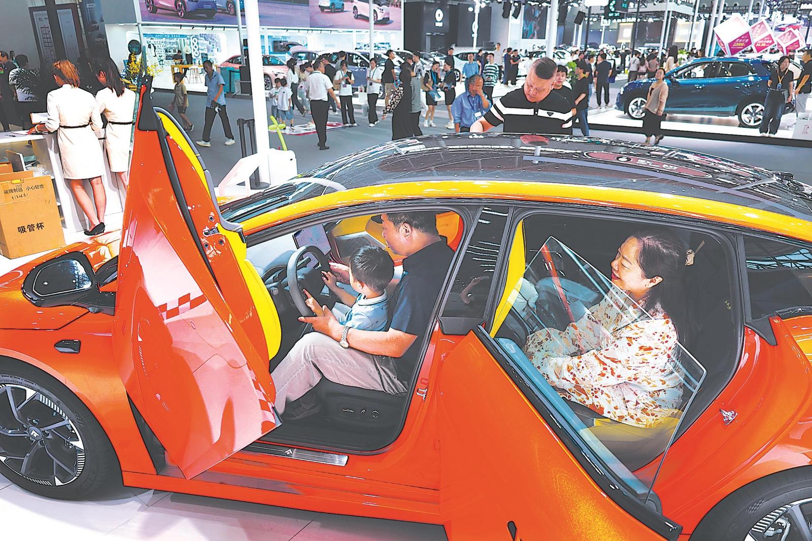 市民坐上新能源汽车,感受驾乘体验。记者 王士龙 摄