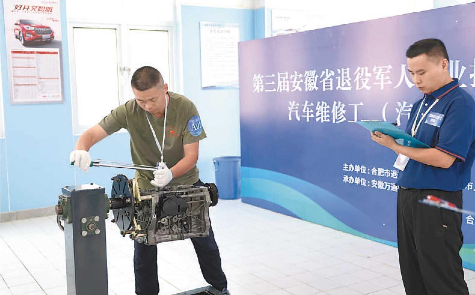 安徽省退役军人职业技能大赛合肥市选拔赛汽车维修工比赛现场。合肥市退役军人事务局供图