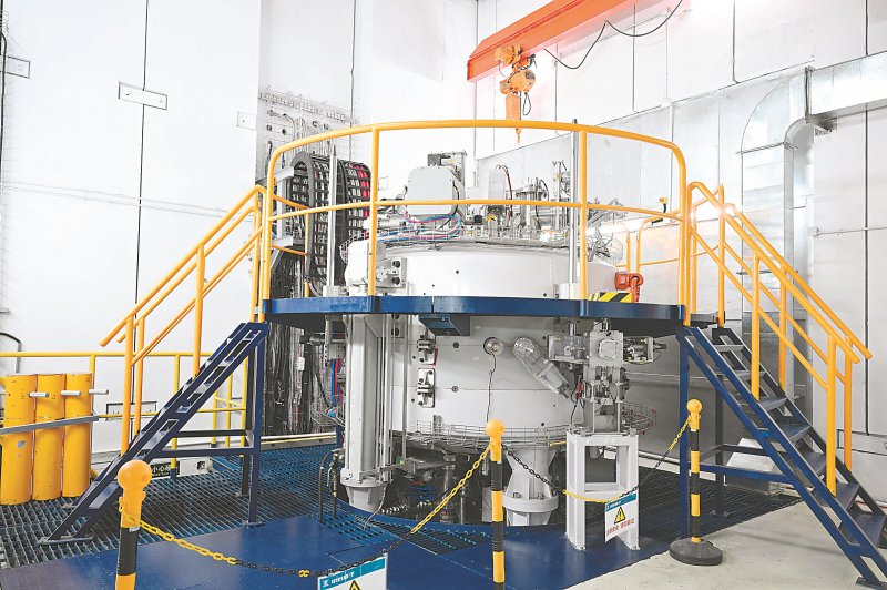 4月13日拍摄的合肥中科离子医学技术装备有限公司研发的首台超导回旋质子加速器。本报记者 徐旻昊 摄