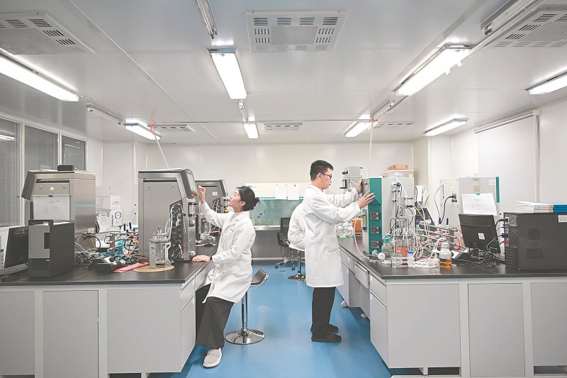 4月13日,安徽安科生物工程(集团)股份有限公司科研人员在实验室攻关。 本报记者 张大岗 摄