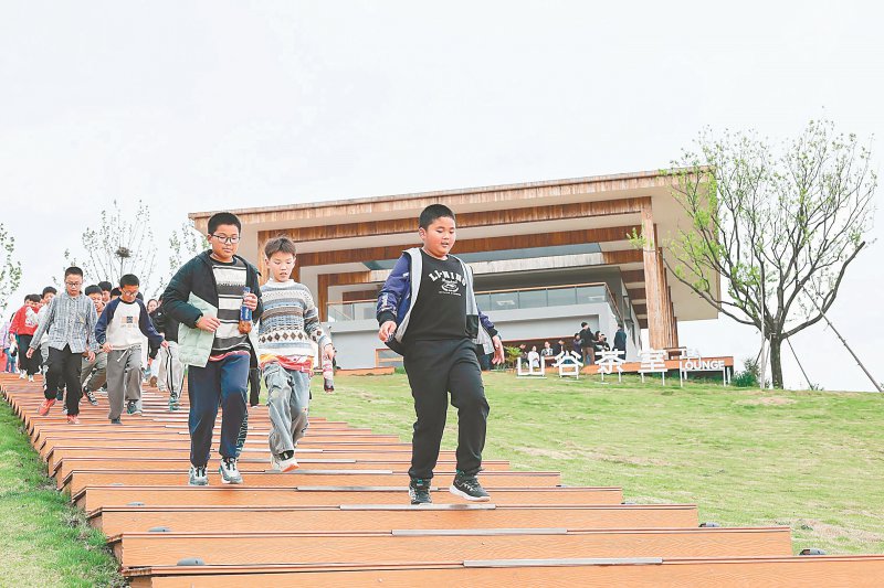 4月13日,孩子们在位于庐江县万山镇长冲村的万山电影公园游玩。本报记者 范柏文 摄