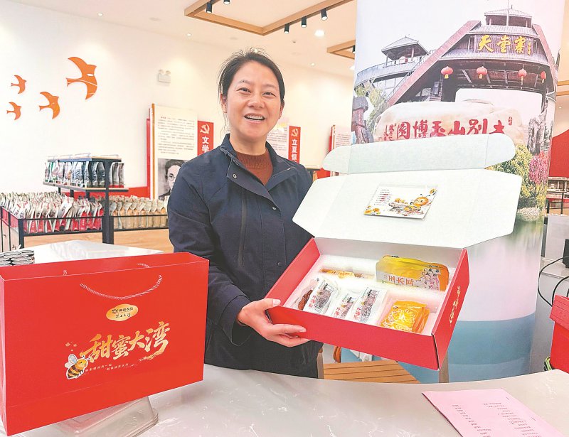 4月14日,在金寨县大湾村,驻村第一书记余静展示“甜蜜四件套”。本报记者 徐旻昊 摄