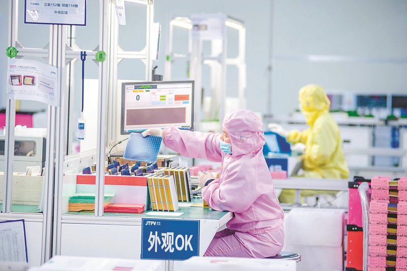 “公司现有35条生产线,日产能超700万片,整个生产环节已经实现智能化、自动化和数字化生产。”滁州捷泰新能源科技有限公司副总欧阳建波告诉记者,该公司自2022年成立以来,一直专注于太阳能光伏电池生产技术的研发,连续3年蝉联全球N型TOPCon电池出货量第一。
