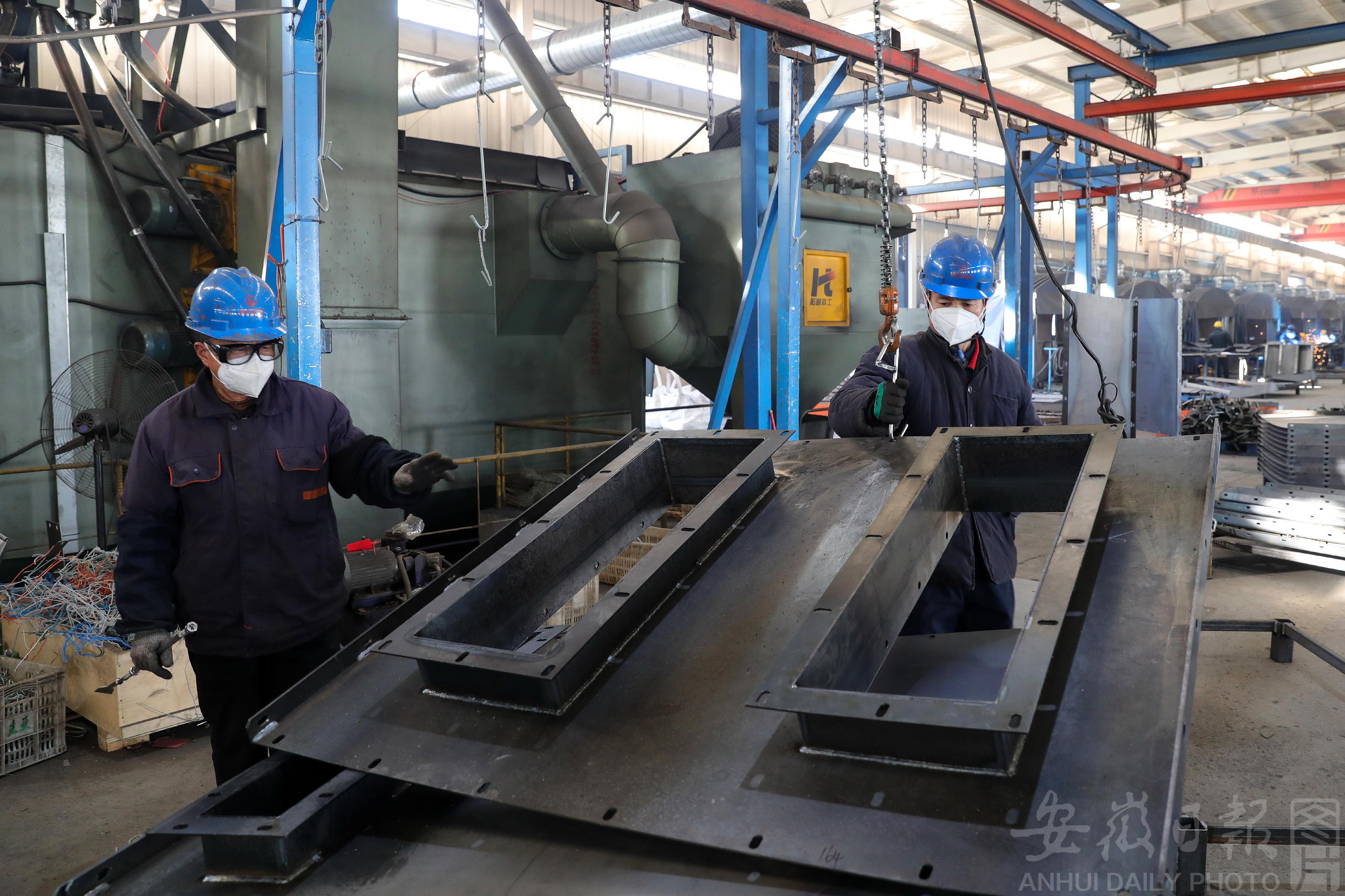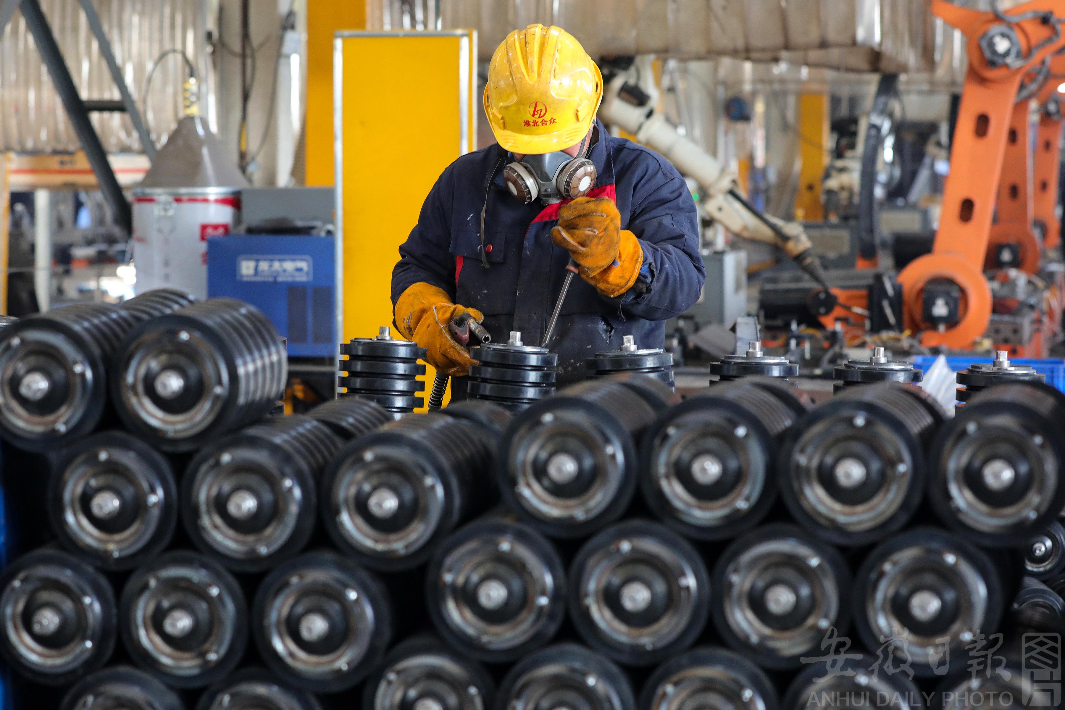 1月9日, 工人在淮北市杜集经济开发区淮北合众机械设备有限公司生产车间作业。 近年来,淮北市大力发展装备制造产业,积极引进龙头和配套企业,引导企业坚持科技创新,加强自主研发,推动装备制造高端化、智能化升级,打造装备制造产业集群,助推当地经济高质量转型发展驶入“快车道”。 本报通讯员 万善朝 摄